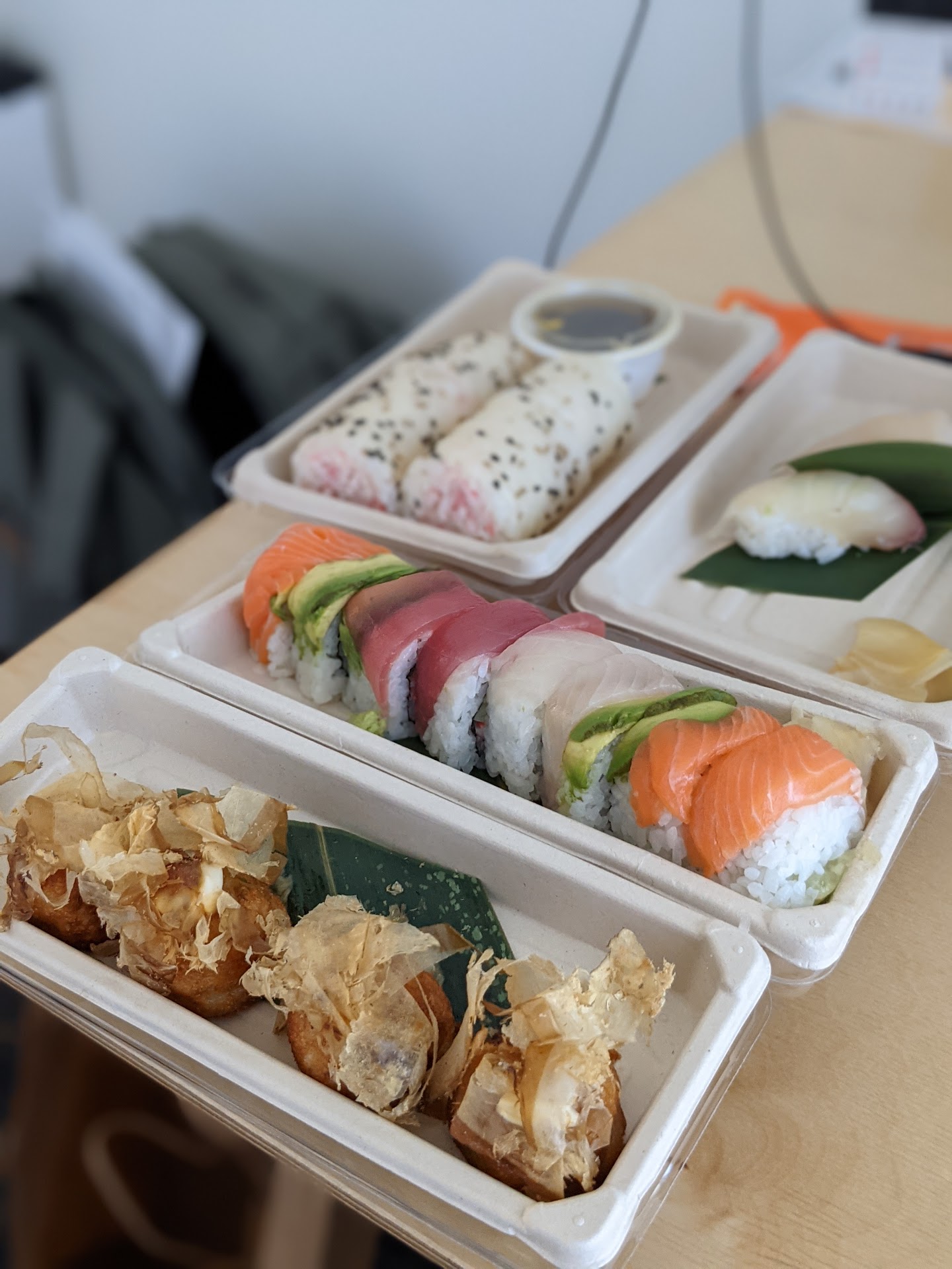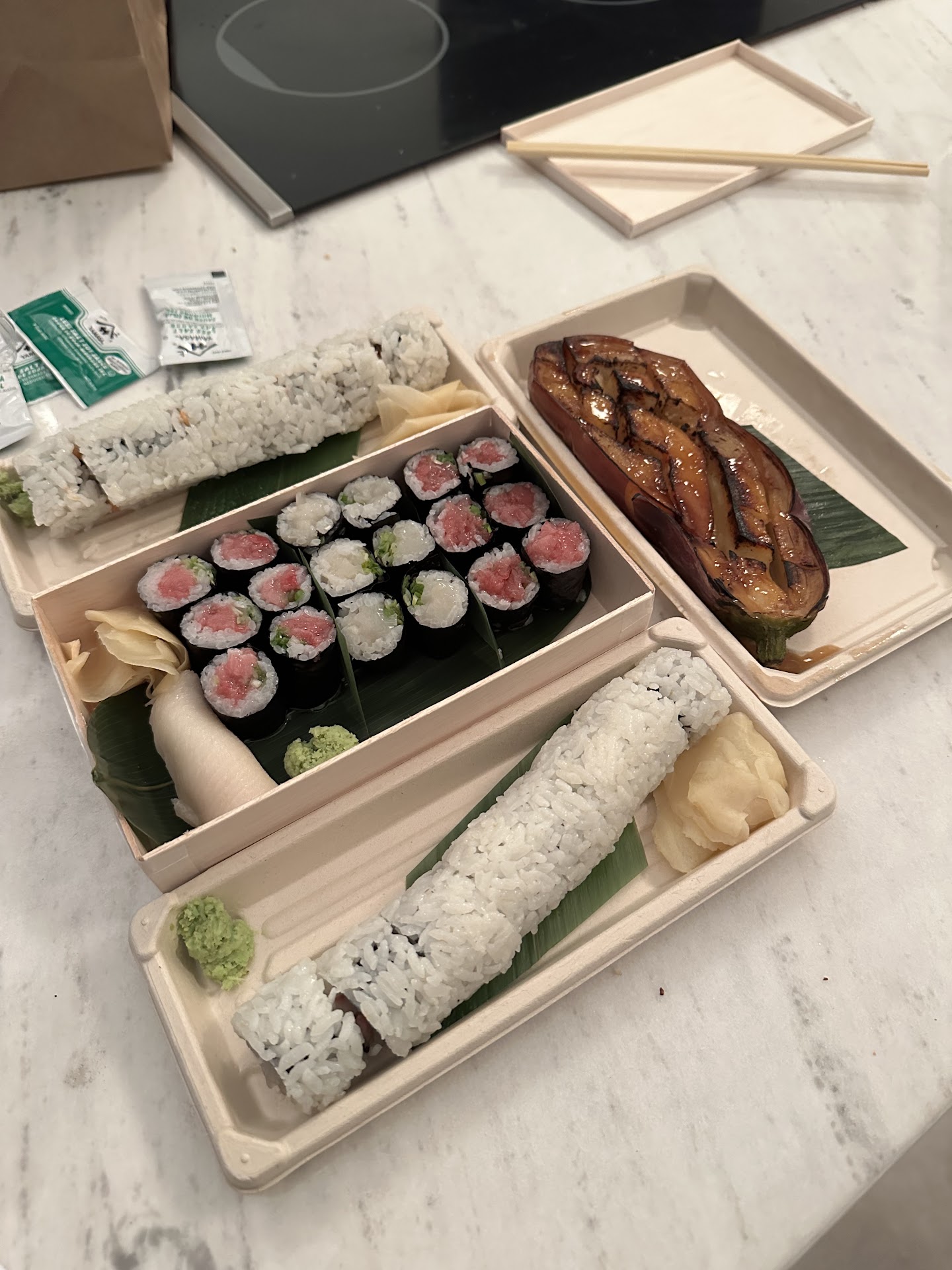 Fish itself is good for PR. The rice is a problem - cold and way too strong that it overpowers the fish. Seaweed also needs help. Miso eggplant was good. Tough for a sushi restaurant to only have delivery. Best of luck setting up for in-person dining! May fix the soggy seaweed / cold...