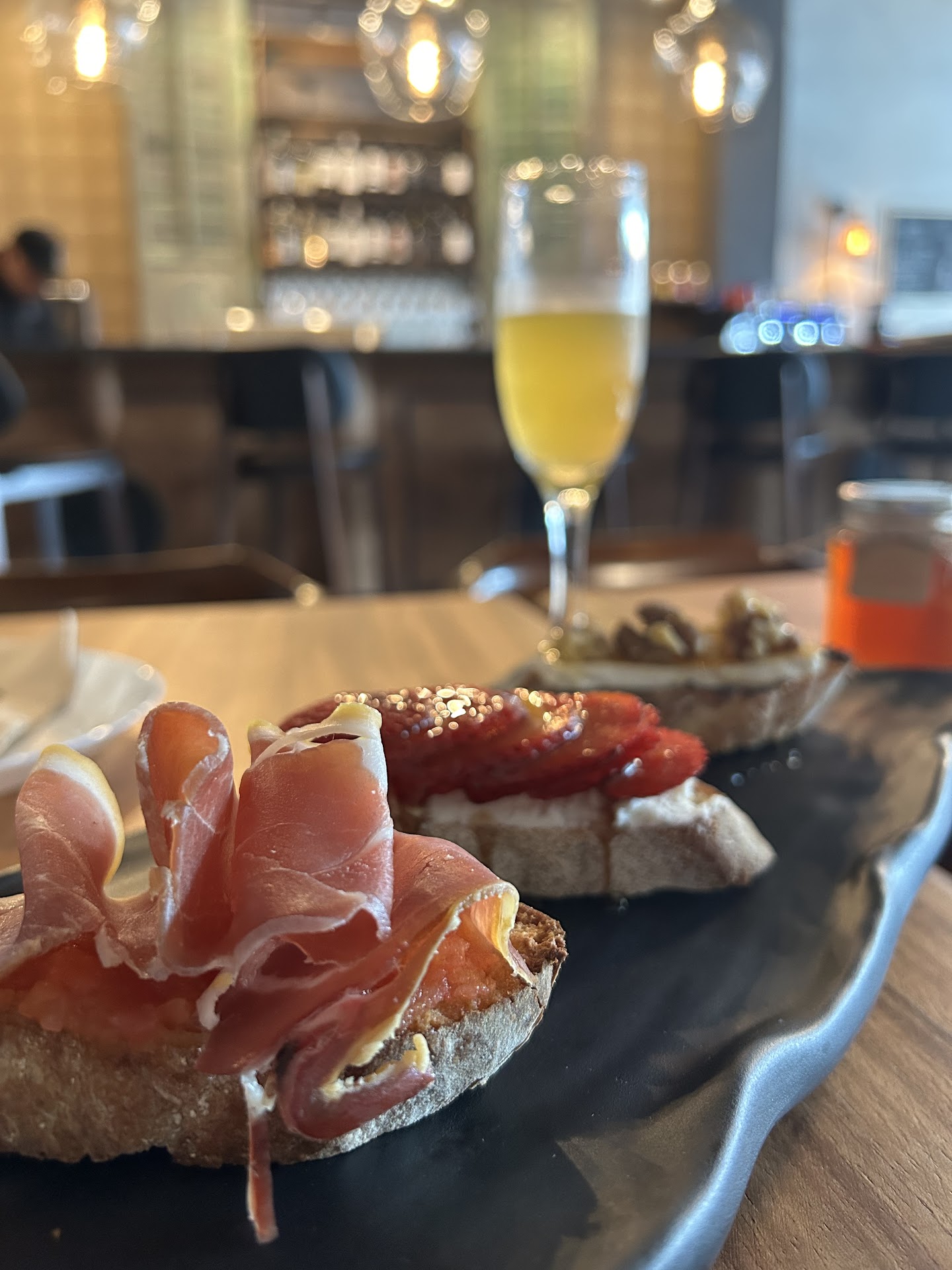 Tafé just opened and we didn’t know exactly what to expect, but it totally blew us away. First off, the service was excellent Monica and Nicole took the best care of us. Made us feel welcome and gave excellent recommendations. The parcha mimosa was perfectly balanced, not too much juice. The tostada were AMAZING! We ordered the jamón ibérico, the Brie and walnut with local honey, and the strawberry one. ALL AMAZING. We also ordered the papas bravas and OMG the sauce was delicious! We finished it with some seriously amazing coffee (local). Clearly Chef Eric knows what he’s doing! Great experience. Will be back. PS. They also had some local honey for sale and we got 2 jars!! I’ve never seen a business offer local honey before so that was...