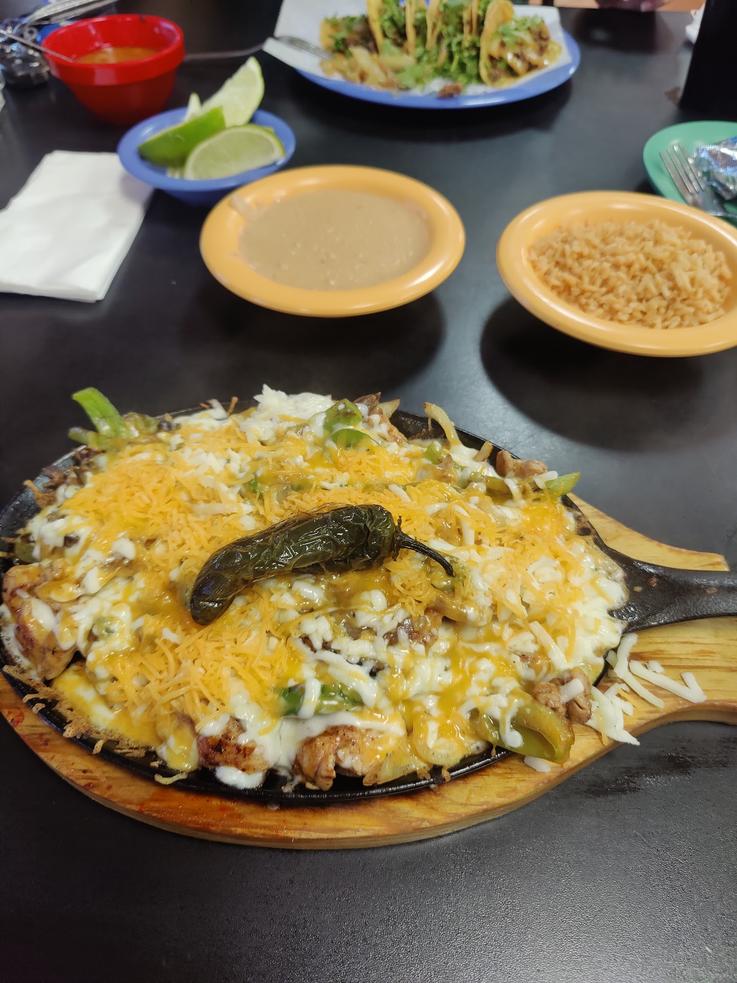 I am a big fan of Mexican food complements to the chef , but the waitress that attended us was horrible she didn’t get our orders right she never stop for refills didn’t even bother to tell us half of the meals were gonna be a 30 min wait spent her time in the employees room I had to ask another waitress to refill my drinks because our waitress would just walk past us til we complained for our other half of the meals . At the end of it all we got frustrated we decided to leave the other half of the meal and asked for it not to be charged she said she would and ended up lying still charged us full price and even had the audacity to get tip from each of our bills because I was eating out with family. I’m very disappointed with this service at this establishment safe yourself a trip and headache by not choosing to eat at this restaurant.