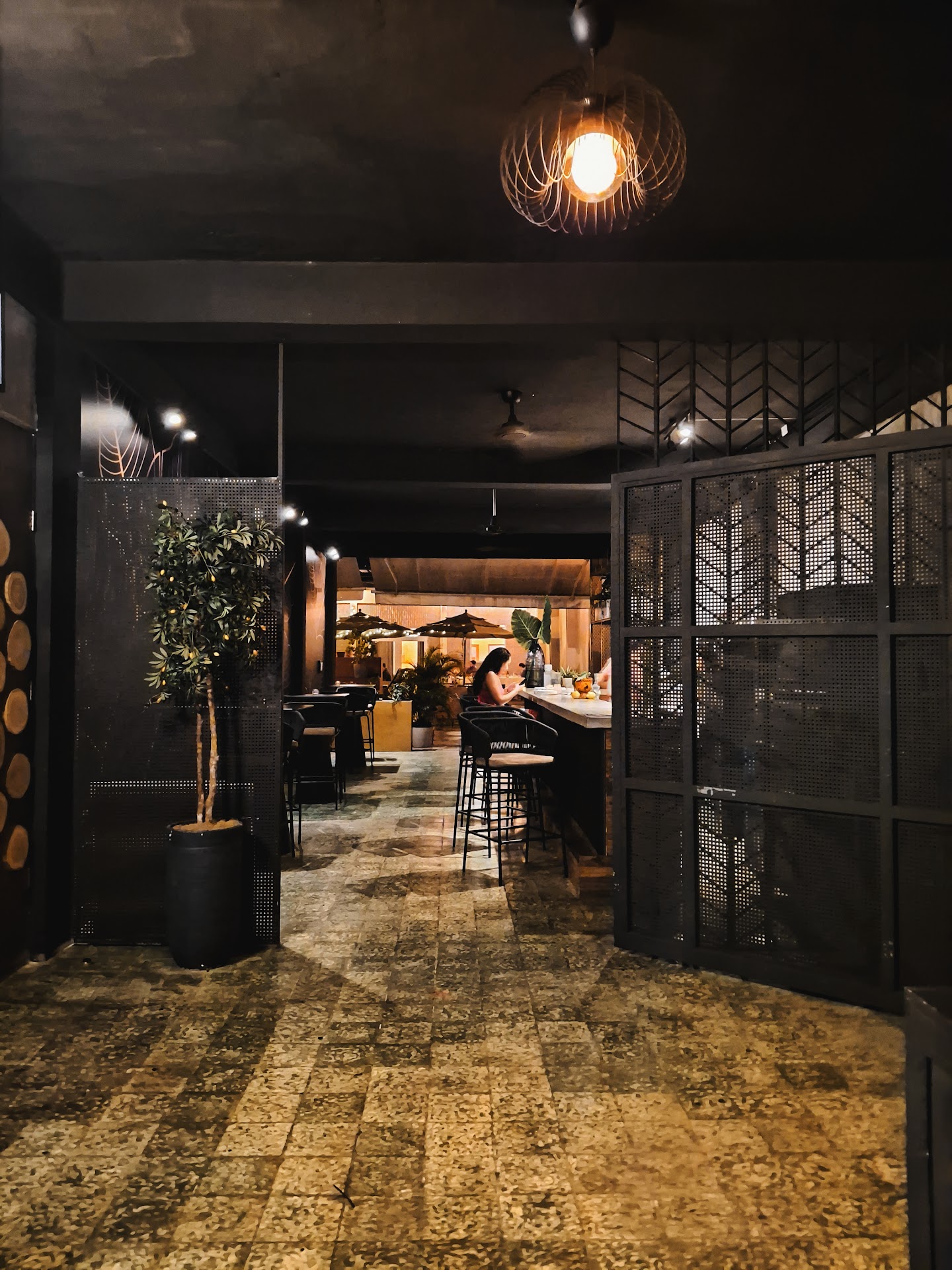 It's a very special place. First of all the space is multi-sided with a small room in the back for traditional dining tables. outside in an inner Courtyard in what used to be a parking area more tables and a loungy sort of area. The driveway is now a beautiful bar with seating at the bar and small rear tables. Through a doorway from the bar there's another club with louder music and dancing actually. Darker with a different party vibe but barely noticable when you arrive at the bar and move back to the restaurant. A very large bouncer for all of this. The restaurant itself does not have a huge number of tables so a reservation is required. Service was excellent. Prices premium. But you get some very well thought out food carefully and thoughtfuly prepared, some of it for the taste and some of it for the, well, food... The menu is not huge but they had a few special items for the day. I had a filet mignon $$$ which did not disappoint with potatoes cooked in a way that was absolutely incredible. Thin sliced into these very small layers. Scallop appetizer was refreshing and unusual. Not for the volume but for the taste. My wife had a fish with noodles which was very good. Tables were a little too close together and they have space to spread them out a bit so they should fix that. Not quite New York City style...but still. If we remained quiet we could hear clearly the conversations of the three tables on our side. Bar and restaurant played music for my generation. Lots of Tito Rodriguez...not too...