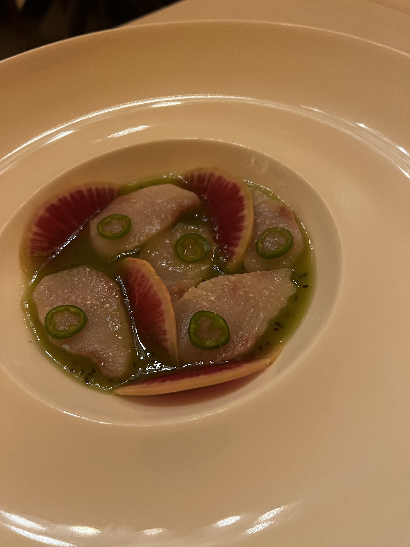 We had two outstanding entrees. The crab risotto was exquisite and creamy. It is a high difficulty dish to get right and this was excellent. The other dish was the sea bass. It was seasoned enough to let the fish shine. We were a bit surprised that they elected to slice the fillet in three for presentation. If you don't want it that way, ask your server for a modification.