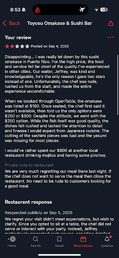 I left my review on OpenTable and wanted to respond to the restaurant’s “clarification.” Please see the attached images for reference.