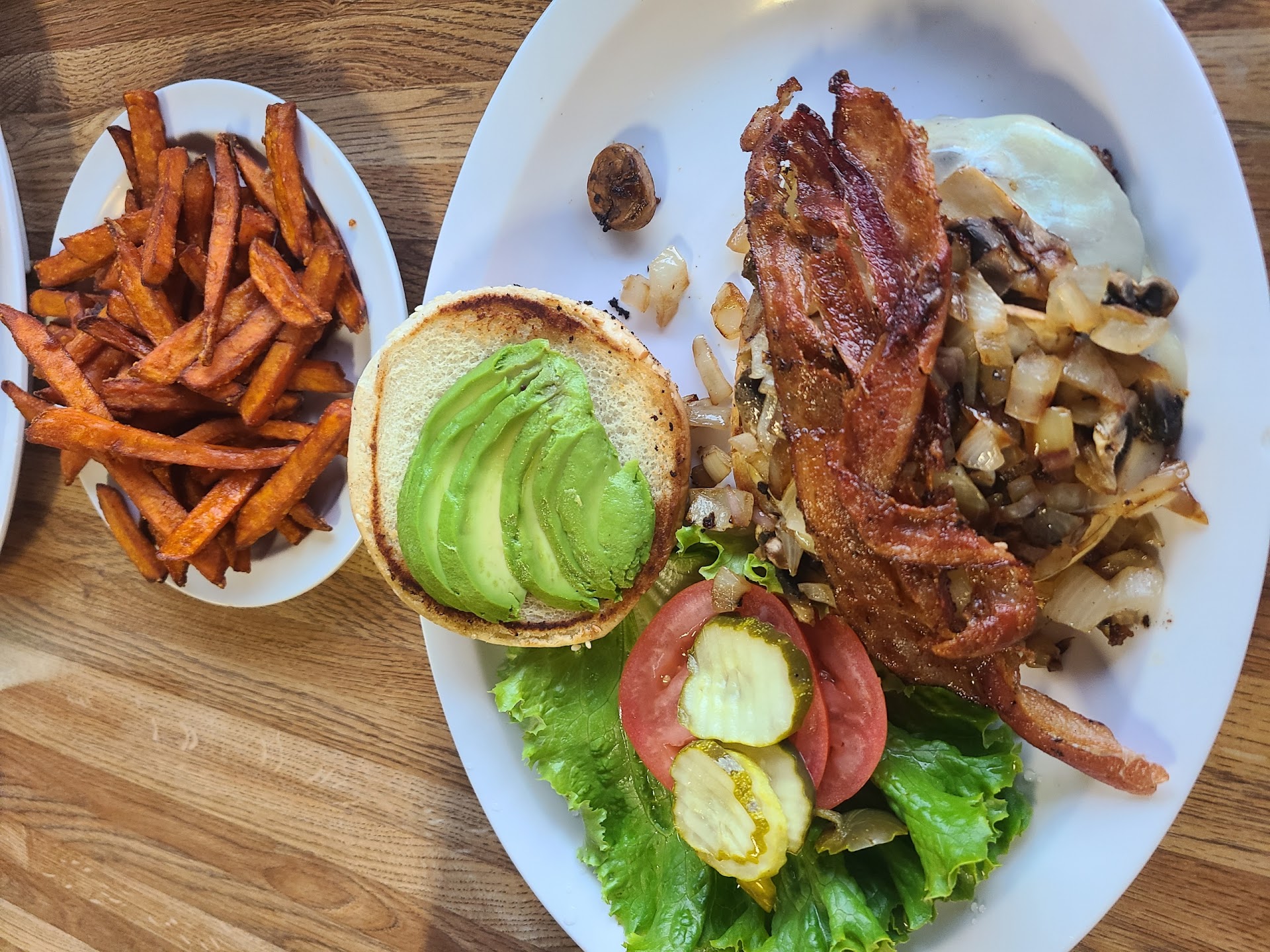Read moreNeighborhood burger joint with great food. All their beef is GRASS FED (which didn't come up on my Yelp search). They have brisket! They have Kobe beef! Grilled cheese! They also have a good sized parking lot. Don't let the empty tables inside fool you - they get a lot of to go orders. Why 4-stars instead of 5? No table service. Also, my to go orders have been a little...off. First to go order: My cheeseburger patty on a salad, when I arrived at home, had the patty stuck to the top of the to go box. The salad is gigantic, and really has no room for add ons. The second to go order, a few weeks later, was okay. I asked for a half order salad with patty, but they said they couldn't accomodate that - they only have one size of salad. So I ordered a cheeseburger with a salad instead of fries. Perfect salad size. Next time, I will order without the bun (I'm restricting carbs for health reasons; it's working great! thanks for asking!), as when I opened the burger to remove the bun, almost all the cheese was melted onto it, so I got to eat none of the cheese I...