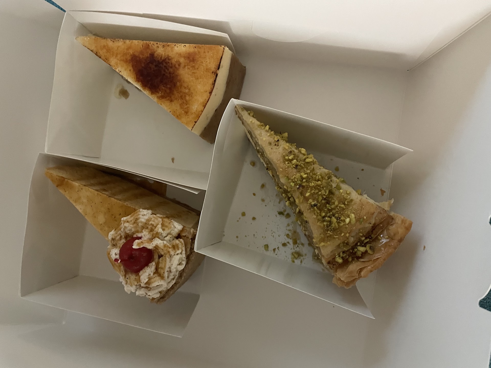 Me and my daughter had a sweet tooth and came here since they were open late and had an array of desserts. Very friendly staff, and the food smelled very yummy. We grabbed a few pieces of cake and all were very lovely as a baker myself I appreciated the plastic film locking in freshness. The owner was also very kind and friendly. Check them out you won’t be...