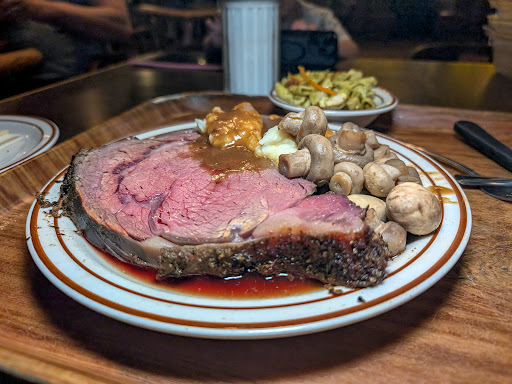 Read moreHand carved meats served buffet style with an assortment of sides, salads, and desserts. Three diners on this trip. The prime rib special, mushrooms and a salad; the bratwurst/ sausage link baked beans and mushrooms and a ham and cheese on rye bread. The bread for the sandwich was fresh, soft and had a good rye taste. Plentiful on the sliced ham, and Swiss cheese a little skimpy on the tomato and mayo, the lettuce was fresh and crisp. The prime rib was over spiced way way too much pepper in the crust but served rare and cooked properly. The salad was “wet, mushy, and in general inedible. The sausage /kielbasa was thin, the equivalent of a foot long hot dog. Had a decent sausage tatse. The mushrooms were quite good, served whole and not overcooked. The beans were warm, barbecue sauced with a sweet smoky sauce. Took four tries to order a dessert they actually had. Cheesecake is nothing to cheer about. Overall a decent meal for three in a cafeteria style eatery Regulars are going to continue to eat here and be complacent. If you have not eaten here and are thinking about— give the Hoffbrau a try for your business. I don’t think you’ll be disappointed for the...