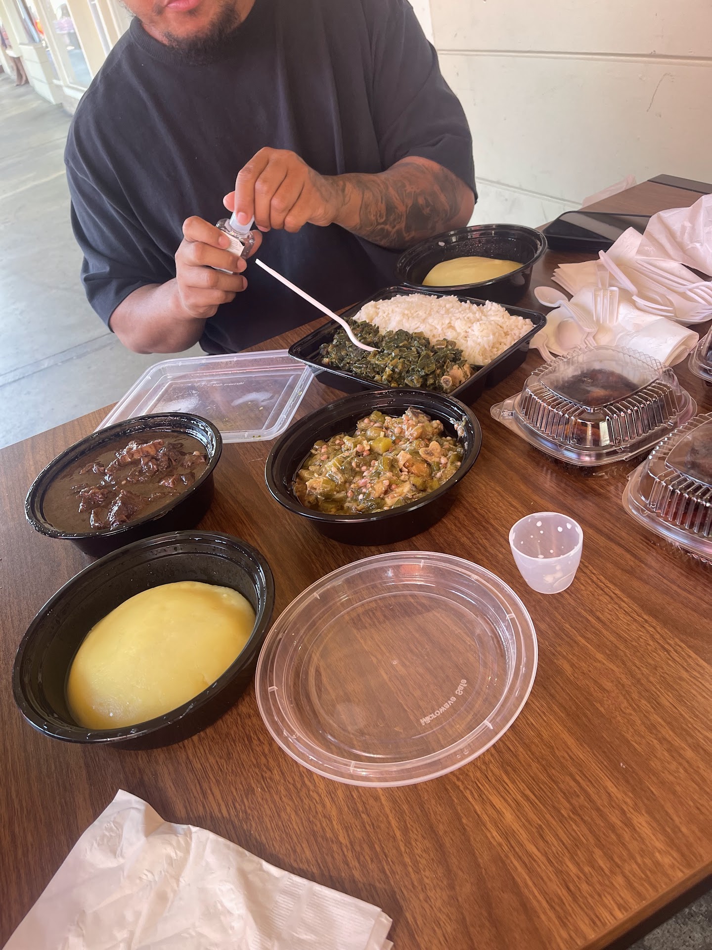 Ā Ā Ā Read moreAtmosphere: is outdoors only couple tables. Service: is quick & fast. The food.... The oxtail is good not much flavor no spices. One single dish will run you $25 that comes with 4 pieces of oxtail and 75% of the dish is rice. You're practically buying a dish of rice at this point. Rice has no flavor every mouthful you have, it tastes like a cardboard box, it's unappetizing eating it at this point. They have a bigger size with 8 pieces of oxtail, I can only imagine the price.