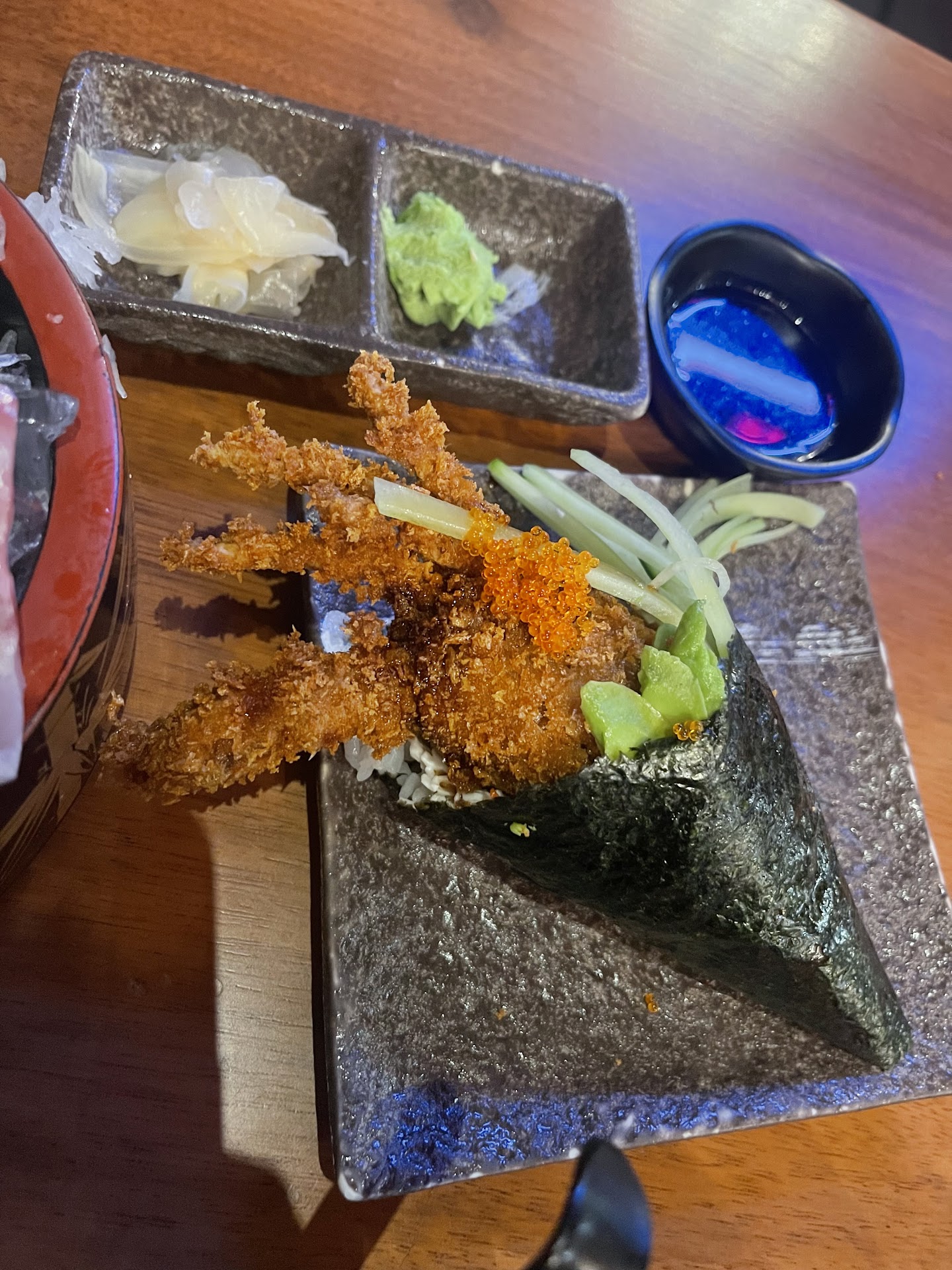 As many have highlighted, the ambiance is great! The color scheme is easy on the eyes. There are plenty of decor to keep your mind occupied while you wait for food. The main dining area can roughly occupy 30 max. That's smaller than most sushi restaurants. Luckily, they have an outdoor dining option that started at the height of covid. My first visit here was because my wife and I really needed quality time outside of the house at that time, and they were able to provide that experience. The impromptu outdoor patio still looks like in need of improvement, but it kept them going through the hardest part of covid. And I'm glad they're still around. Fried dishes are crisp. Raw fish have their distinct taste individually and do not just taste "fishy." The unagi don came with a sunny-side up fried egg, sweetened by the unagi sauce, and also seasoned with furikake. The Sashimi 15-piece they served us came in a decorative stand and had a bonsai tree with it. Much more impressive than a sushi boat or any plate. Of the times visited, I've been surprised by their food's taste and quality. I would definitely recommend coming here. But don't crowd or flock. Parking is very limited and is relative to their...