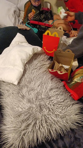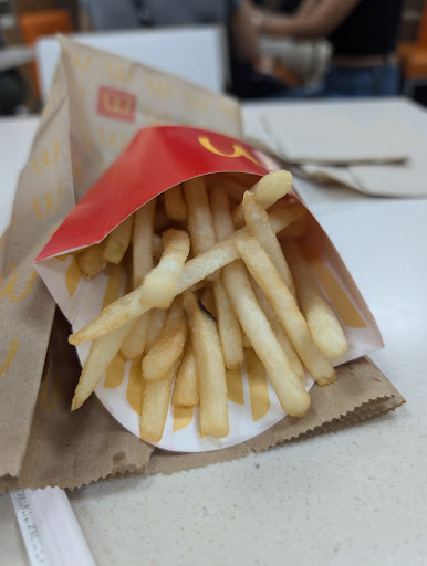 Went to get 20 piece mc nuggets, large fries 🍟 and a plain cheese burger 🍔 for my grandkids and My Wife told me to specifically tell the cashier no sauce on the burger but only cheese, burger,bun and the pickle because last time they didn't do it. I don't think it was this McDonald's but I let the kid taking my order and he was very patient with me because I told him twice but he said he got it and it will be out in a little bit. I took it home and the order was right the fries 🍟 we're delicious because I tried some when my grandkids weren't looking and the chicken nugget was fresh,hot and good. I gave the atmosphere a 3 ⭐ because some of the restaurant was blocked off because there were a lot of homeless people around. One was sleeping after eating and they lock up the bathroom now. In this plaza in San Leandro has a lot of homeless people around. I know the StruggleS are Real but I never seen the city I used to live...