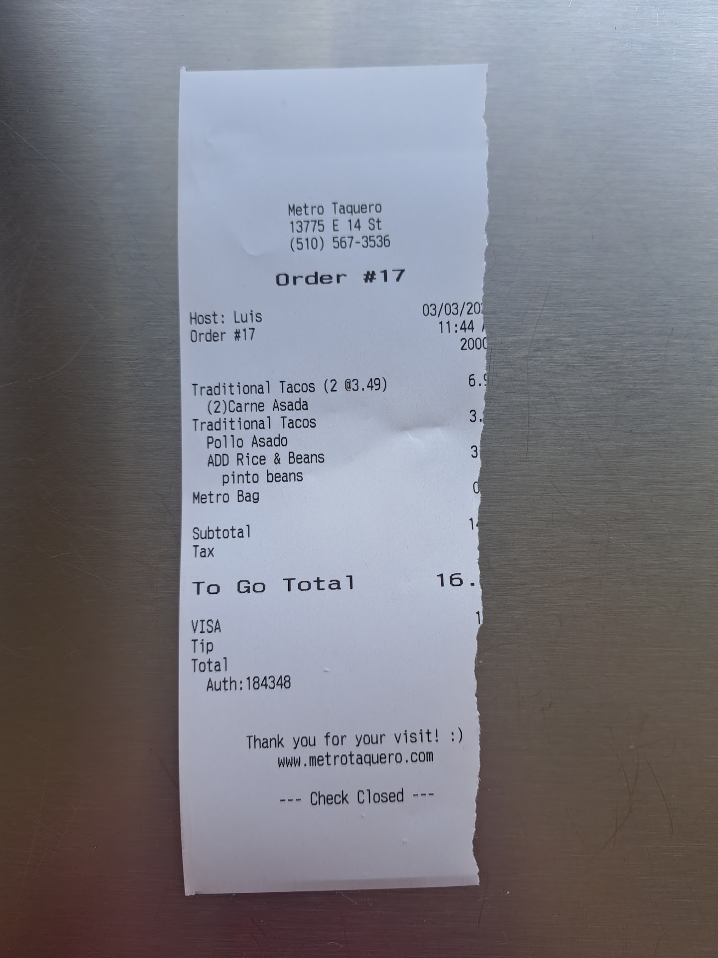 Read morePuedo entender que una empresa como una taqueria se compone de buenos y malos trabajadores pero mi experiencia no bueno nada buena con esta taqueria e invito a todos los clientes potencialmente nuevos que se puedan tomar su tiempo en poder ordenar ya que el menu no es claro y tampoco el producto en este caso ordene una quesadilla regular (en cualquier otro lugar de azada me la sirven con un poco más de cariño al producto con su ensalada a donde el cliente ve y se le pueda antojar comer la quesadilla y lo que recibí fue una quesadilla sin carne ni un poco de ensalada sin salsa y sin ningún condimento rábanos y un poco de jalapeño pero el problema fue cuando regrese a decirle que la quesadilla no era lo que ordenamos y hablando con el personal llegó el cocinero y se puso a decir que tenía que pagar más por que nosotros los latimos siempre queremos regalado y al parecer el no entendió que yo estaba dispuesto a pagar por algo bien hecho y que me gustara que pudiera comer con gusto pero no fue así y me hizo enojar y saqué mi cartera y le pagué 20 dls más $8.77 en total fueron $28.77 por una quesadilla que pareciera que fue hecha con loa pies ya que no era nada parecido a las expectativas de lo que dicen en las reseñas por eso invito a que tenga mucho cuidado ya que terminarás pagando más por algo que no te gustara y los empleados son muy fríos sin amor a su trabajo ahora entiendo cómo un lugar puede ser buena la comida pero por malos empleados y servicio un lugar puede caer aún teniendo la mejor comida invito al dueño que pueda dar un buen servicio ya que fue mi primera visita a la taqueria y no me gustaría tener que pagar por algo que no no me gustara también tengo pruebas de lo que estoy hablado tome fotos (LA QUESADILLA MÁS CARA EN MUCHOS AÑOS DE CONOCER TODAS...