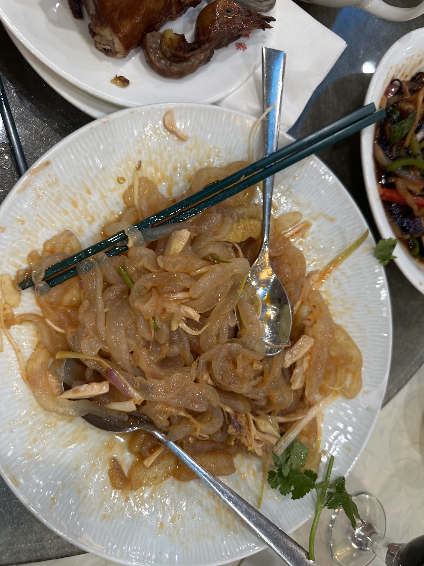 We have been loyal customers for many years, but this time was truly disappointing. We ordered the Spicy Chicken with Jellyfish, a dish I personally love and order almost every visit. However, this time, it was almost entirely jellyfish with barely any shredded chicken. It seemed like, since it was close to closing time, they didn’t want to prepare the chicken and just gave us extra jellyfish instead.