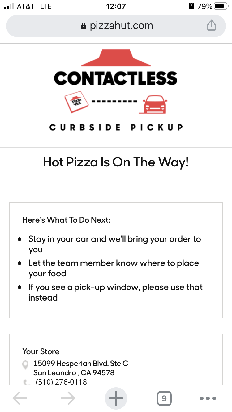 Beware if ordering online and utilizing the CONTACTLESS CURBSIDE PICKUP. Today we put in an online order. You’re then given a link to click on in an email when you arrive. I get to this Pizza Hut, clock the link and as you can see in the picture it clearly says to stay in the car and someone will bring the food out. I’m waiting in the car for 5 minutes.. wonder what could be the delay.. then about 10 min. I was already getting upset because if it wasn’t ready at the scheduled pick up time, then what’s the point of choosing your pick up time when ordering?! So I give up and go inside the shop and tell them I had a curbside pick up order scheduled for 11:45 (which now is almost 12). The worker at the counter told me that I had to call them when I arrive. I told them the link from the email said to wait in the car and they insisted I had to call. Obviously there’s some miscommunication between their corporate office and stores or the managers because the link/email clearly does not state that. This is going to and probably already had caused...