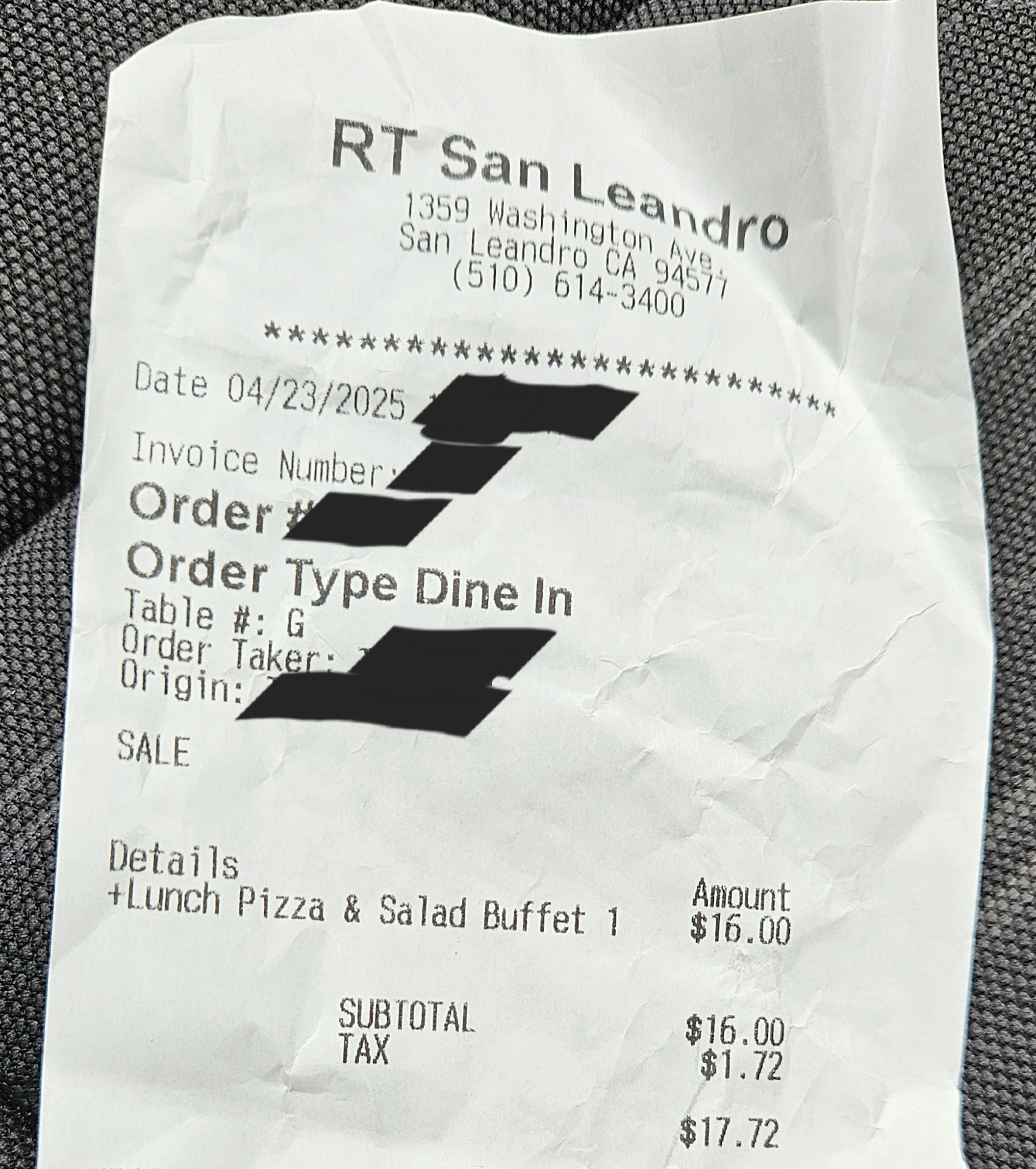 Read moreOn 4/23/2025 I had the lunch buffet with pizza and salad and was charged more than the posted price. The big sign as you walk in showed pizza was $12 and salad $3. A smaller sign at the cash register when ordering showed the same prices. I was charged $16 plus tax and when I questioned the cashier on the dollar difference he said the sign is wrong but said the price is in the computer as $16 and that's the price. I paid the price as I was hungry and was already there and wanted pizza. After maybe 10 minutes the cashier came to my table and said he asked his boss about it and gave me $1. Technically I was still overcharged 11 cents, but I wasn't going to argue with him over it. So you might be thinking someone forgot to change the signs when they updated the price, but one sign behind and above the cash register was updated. That means they knew the signs should be changed, but didn't update all. I didn't appreciate the initial dismissal about the price discrepancy. It doesn't matter what's in the computer. When you have a price prominently displayed as you walk in, that's the price. When I left, guess what? The big sign wasn't changed or atleast price wasn't covered up. Fixing deceptive prices just isn't a...