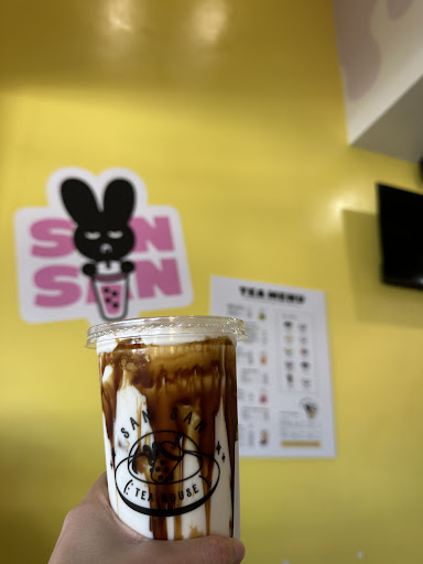 We stopped by San San Tea House over the weekend while visiting the area, and overall, it was a great experience. It wasnât too busy when we first arrived, which gave us time to look through the menu and ask questions without feeling rushed. The cashier was incredibly friendly, patiently explained the drink options, and gave helpful recommendations. That level of customer service really stood out and made a positive first impression. We ordered four drinks to try a variety of flavors: Osmanthus Oolong Tea, Purple Cloud Milk Tea, Brown Sugar Boba Fresh Milk Tea, and Peach Mango Tea. All of them were solid choicesârefreshing, flavorful, and well-balanced in sweetness. The Brown Sugar Boba Fresh Milk Tea had a nice depth from the syrup and chewy boba, while the Peach Mango Tea was vibrant and fruity without being too sweet. The Purple Cloud Milk Tea was creamy and unique, a standout among the four. The only slight letdown was the Osmanthus Oolong Tea. I had asked for their strongest tea, and while the flavor was pleasant, it came off a bit too mild for my taste. I was hoping for a bolder, more robust oolong base, especially with the floral osmanthus notes. One thing to note: there's a 3% credit card fee, which Iâm not a fan of. I understand itâs becoming more common with businesses passing processing fees on to customers, but itâs still a bit of a downside, especially for small purchases. By the time we left, there was a line out the doorâwhich definitely says something about this placeâs popularity. The drinks were good, the service was excellent, and Iâd definitely come back to explore more...