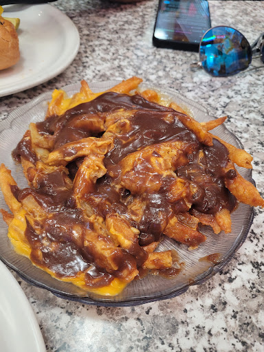 As for the service and food: we didn't have to wait long to be seated and our waitress was very kind. We ordered a cheesesteak sandwich along with my poutine and let her know we were going to split it. The food arrived relatively quickly and was HUGE for what you pay. Our waitress also provided us with double the plates so we could easily split the food without us having to ask for them which was sweet. We also ordered a peach lemonade that she requested and though she forgot it at first, she quickly realized she had and brought it over without as having to remind her.