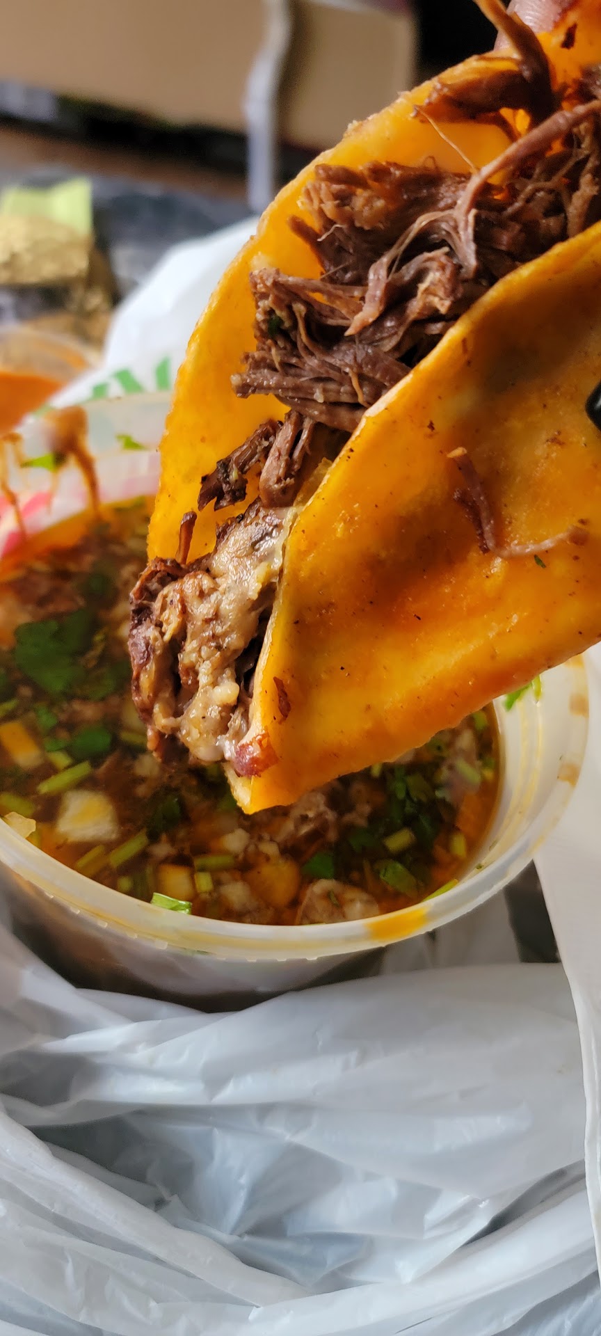 Read moreNot what we hoped for. Friendly staff but the birria was not very flavorful. The tacos required self assembly with both grilled and fresh onions as well as cilantro. The half pint of consomme was five extra dollars (and we ordered 6 tacos) and was not very good. We decided after a few bites to try a different birria place. Parking isn't a problem unless...