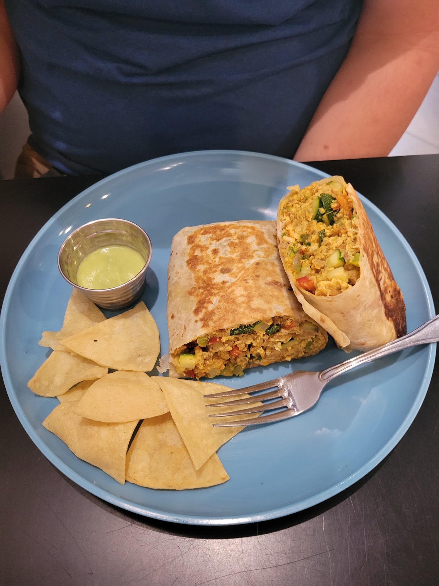 I ordered the pancakes with fruit, and my husband ordered the breakfast wrap. We were a little disappointed with the selection of food available. It's very limited. I was also hoping for some orange juice, but they didn't have any. Neither my husband nor I was impressed with the food. The pancakes tasted very eggy and the breakfast wrap felt like it was missing something, like it needed potatoes or something. The downtown SLO prices felt overpriced for the quality of the food we received ($33 for just the two entrees).