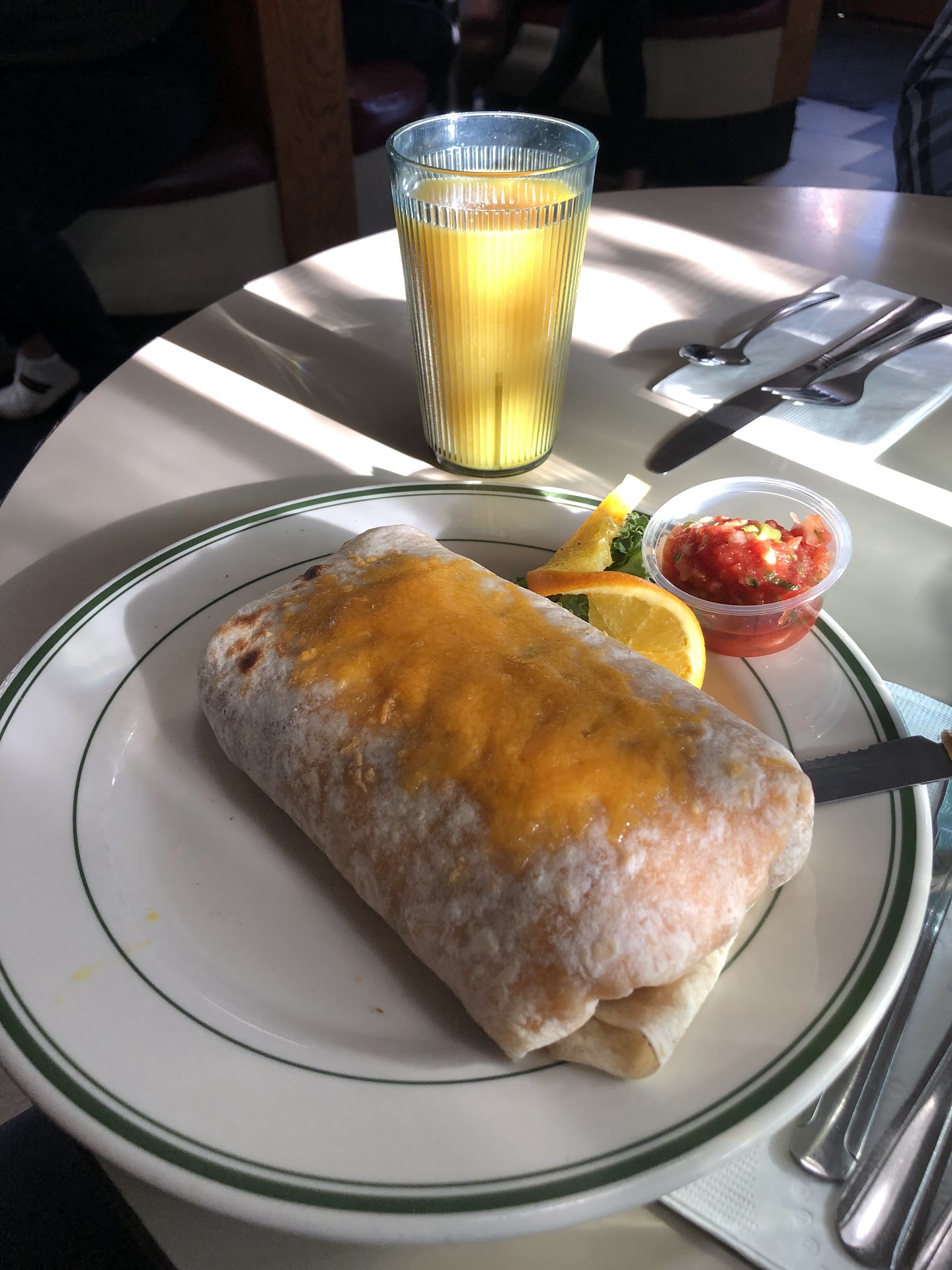 Service here is excellent. We needed time to review the menu, and our server was patient and friendly. It didn't take long to receive our meals, a sandwich and burger (with local sparkling wine Mimosa), which were generous portions and quite tasty.