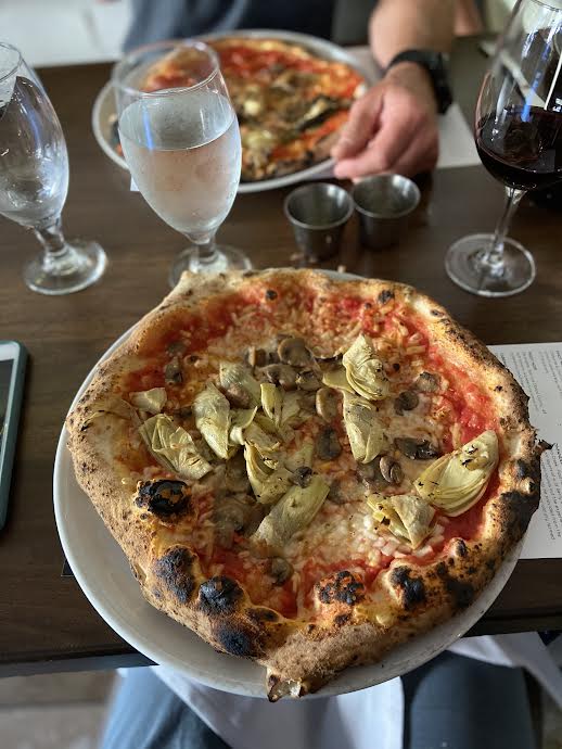 The pizza has a nice wood fired edge and a little flexible in the middle. Kind of fun to fold it and eat. They have a ton of interesting flavors and combos which can be overwhelming a bit. A good starter pizza is the Americana and one of my favorites there. They also have meter Monday where they bake a meter (of 1/2 meter) of pizza
