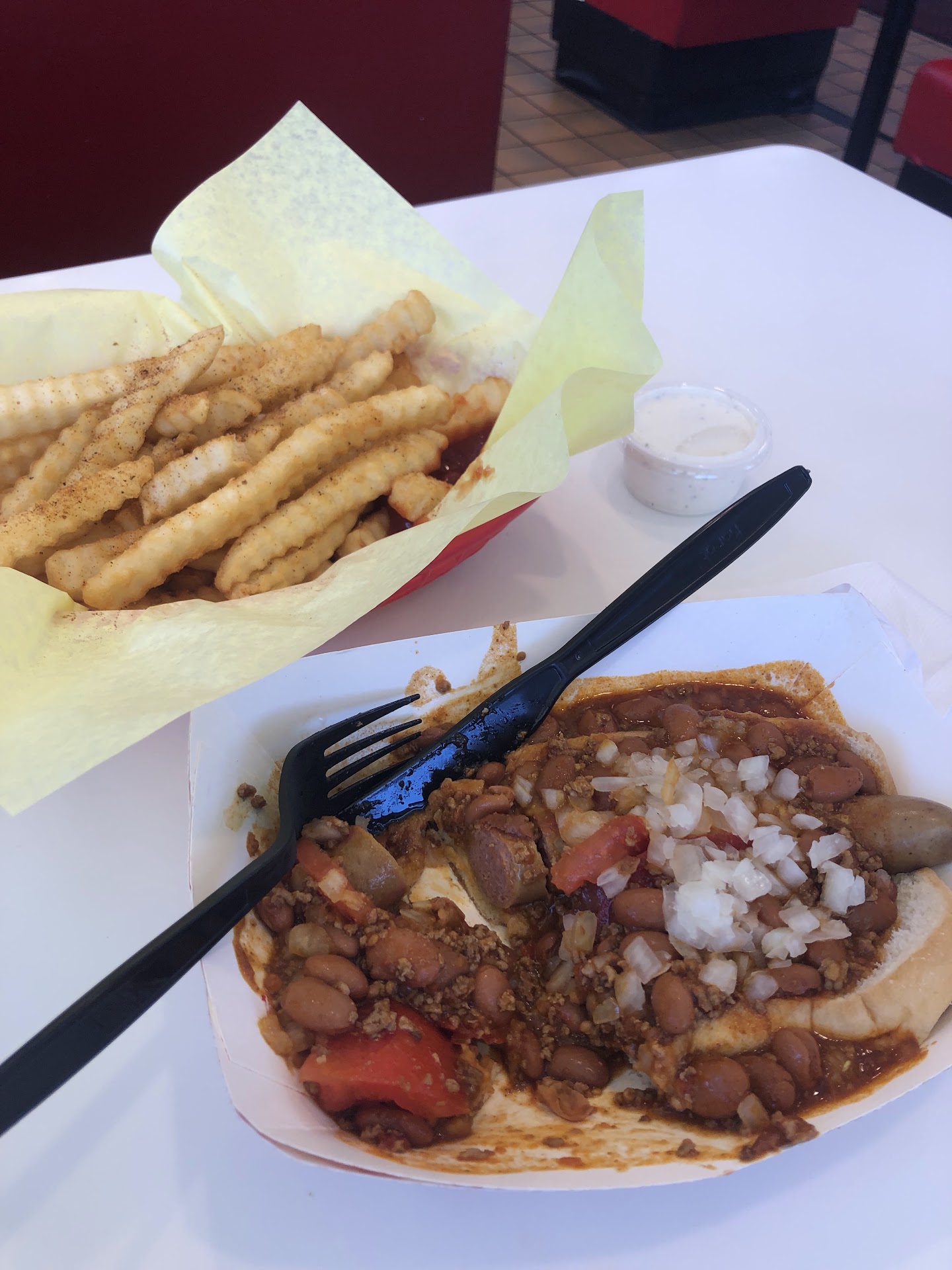 Ā Ā Ā Read moreOMG Iām so disappointed⦠my roommate recommended this place and by his voice I should have stayed away! Oh well I was craving a good hot dog wow⦠I placed my order and went over it twice I clearly stated chili for both dogs now keep in mind I was extremely hungry so he brings my dogs and I tear into the first one I noticed there was no chili ok Iām very hungry so I just continued to consume⦠I just cut into the polish with chili cheese NOT this one was lacking the key ingredient CHILI ok Iām bummed out now hereās the final straw that put it over the top! #1 the dogs were totally over cooked very dry #2 I tipped $10.00 on a $20.00 order I think people go there because it's easily accessible look at the recent reviews they speaks volumes⦠lesson learned #1 go over the order with the customer #2 you only get one chance to make a good impression⦠enough said spend your hard earned money elsewhere! Go to Costco for a buck.55...
