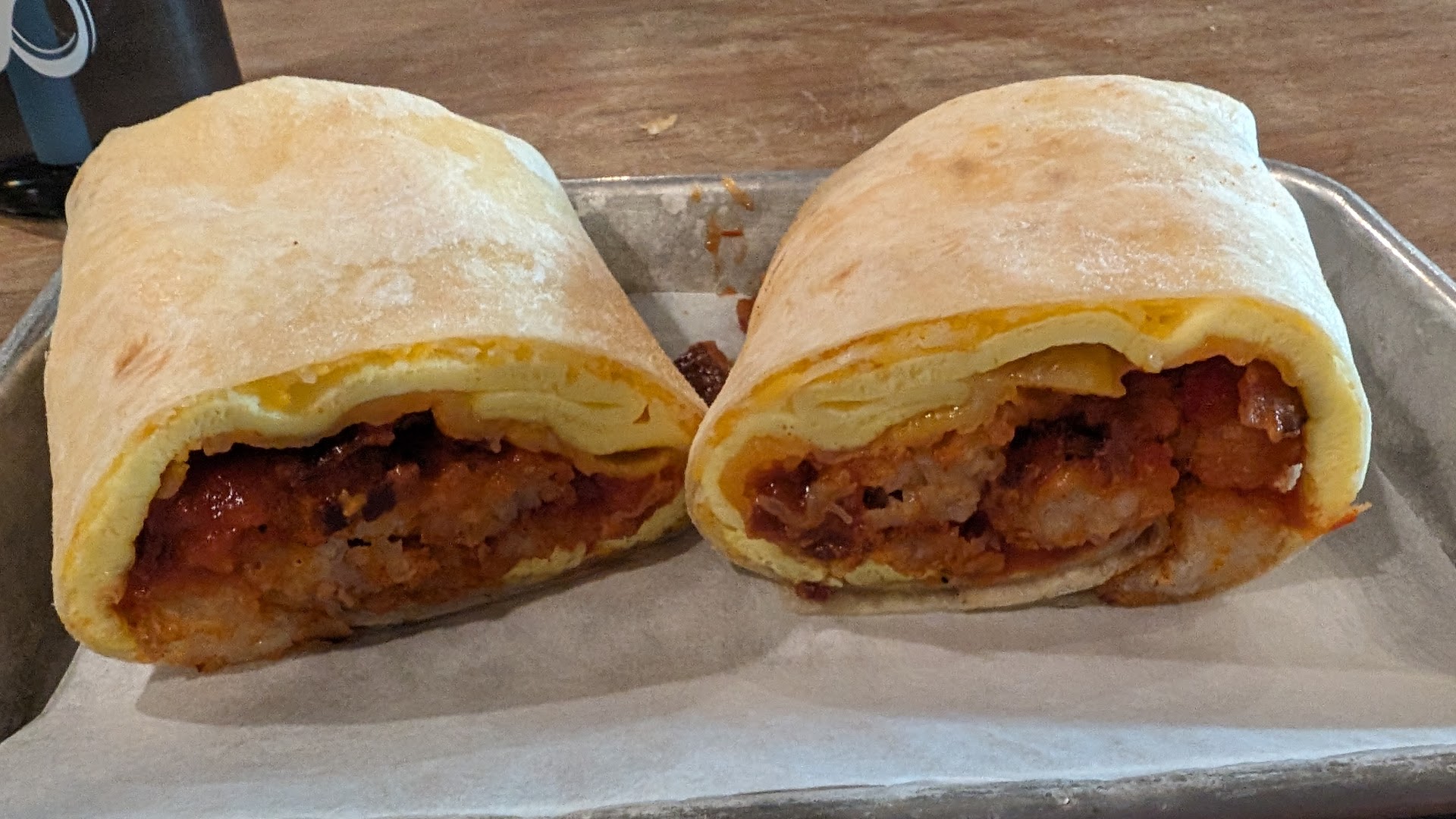 The breakfast burrito was just that, nothing special and served on a plate without any sort of garnishment.