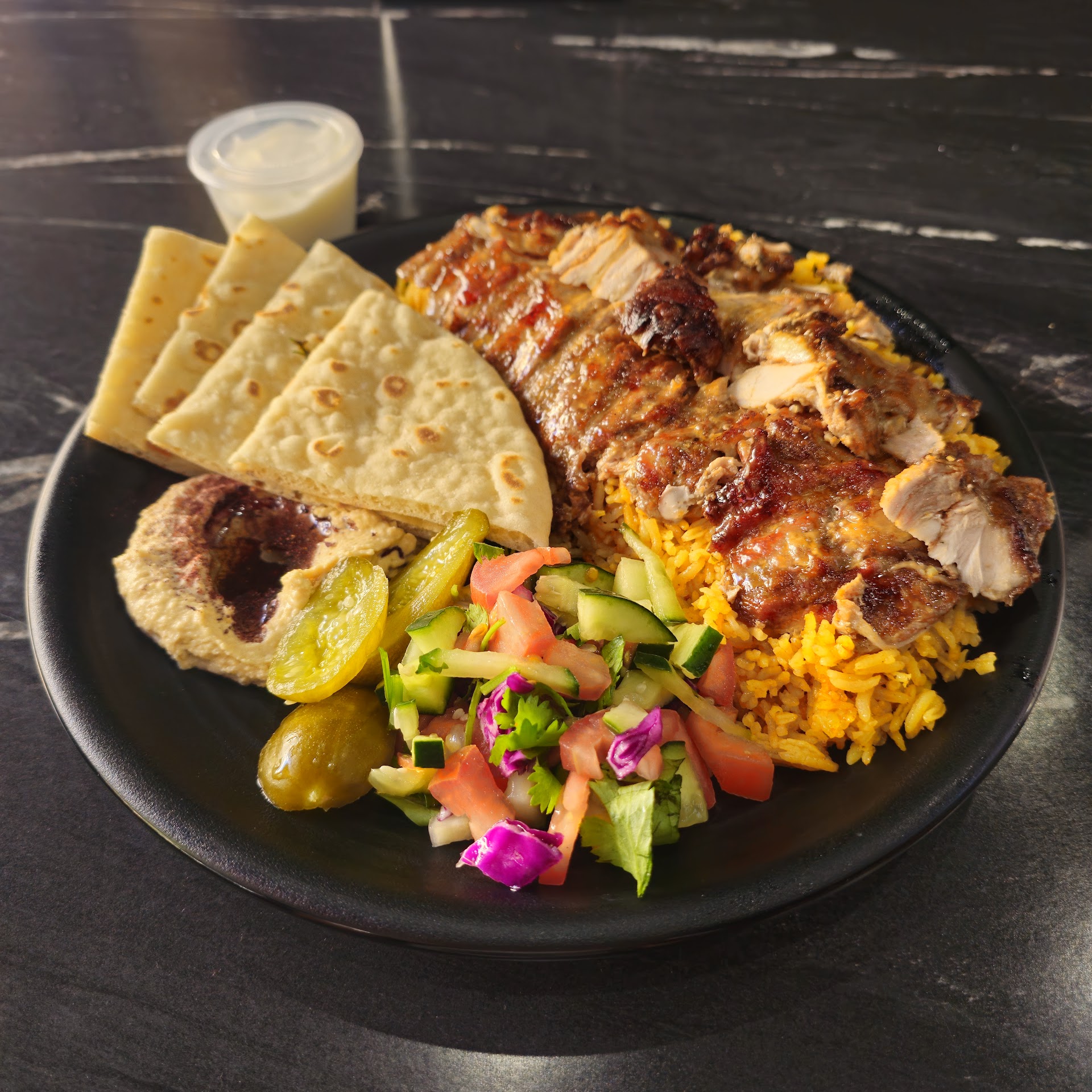 Read moreIn town for a work trip and decided to give this restaurant a try. The restaurant was very clean and the server taking my order was very friendly. Prices are pretty average and reasonable for good quality Mediterranean food. I ordered the combo plate with beef kefta and beef shish kabob and a Mediterranean salad. The first thing I noticed before digging in is the scent, the aroma of the meat and spices was delicious and a great sign of things to come. Now the fun part, eating. The food was delicious, meat was well seasoned and I enjoyed every last bite. The meat was slightly over cooked to my taste, but take that with a grain of salt because I prefer my meat with a pulse, this did not impact my experience in the slightest bit. The star of the show to me was the yellow rice, I was pretty full halfway through my plate but could not stop eating until it was completely done. At the time of writing this review I have not yet tried the salad as I’m saving it for a later meal, however it’s visually pleasing and all the produce in it is fresh. Finally the portions, they’re very well portioned, as I stated earlier I was pretty full halfway through my plate. Overall, I loved this restaurant and it satisfied my craving for good Mediterranean food. 10/10 would recommend that you give this...