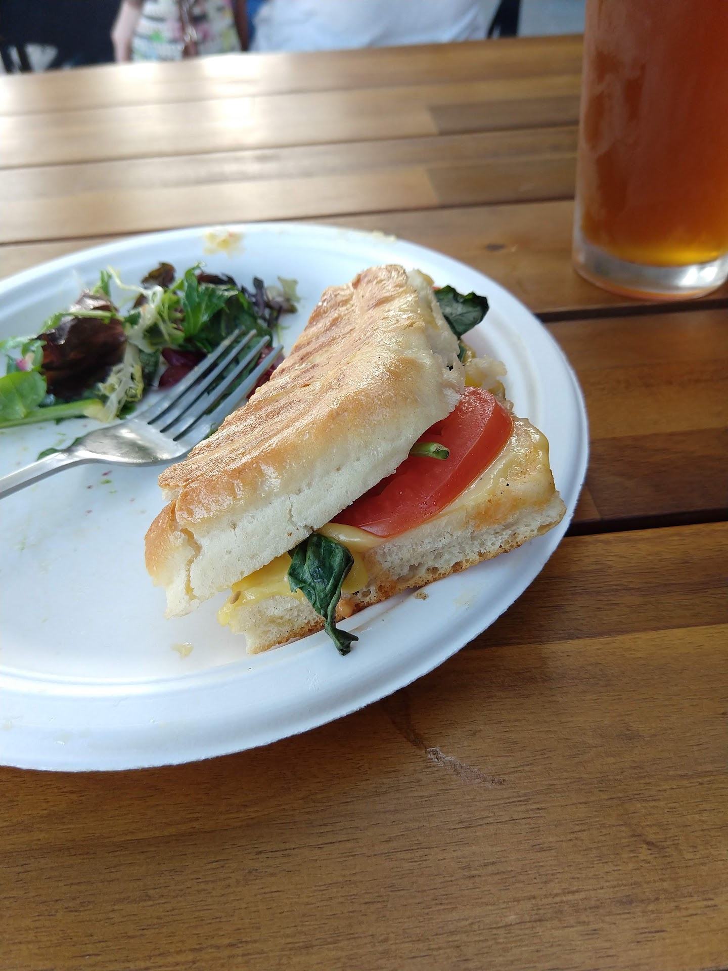 Went there on a Saturday date night with the hubby. This place had a LOT of people there but it honestly didn't feel too crowded thanks to the layout. This was my first time trying their brews and I thought they were pretty refreshing; definitely tasted fresh and the IPA was perfectly balaned with hoppy and a bit of sweet. We ordered two grilled cheese sandwiches and I was so happy to learn they actually had GOOD vegan cheese!!! When I saw the menu I honestly thought they would take the common resteraunt way of saying "vegan options" meaning I would get grilled bredad with tomatoes, but they surprised me with some tasty fake gooey goodnedss!! Photo below, forgot to take one until half way through the sandwich and salad, so know that you do get more for your money!! The bread was very tasty too, and outdoor seating with the firepit was nice. All around good date night, and I am planning to go back for an afternoon pint sometime...