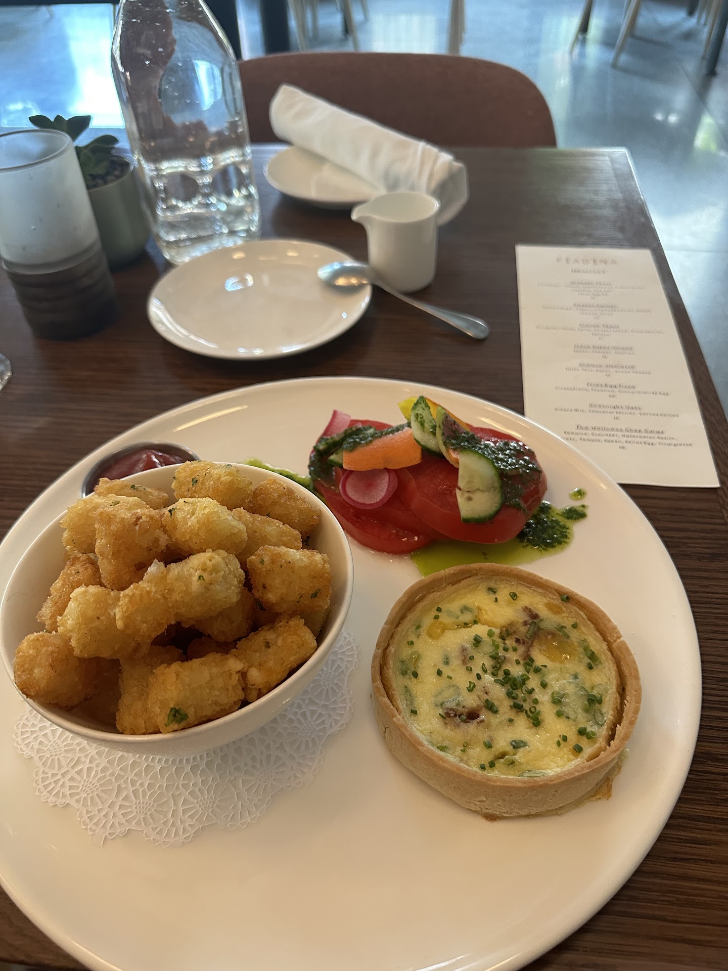 Read moreCame for breakfast, left disappointed. I wanted to give 1 star, but my better self added another for the ambiance and service. The food is good, but the menu is confusing and too simplistic. I ordered the quiche and what appeared 15 minutes later was a giant platter pleasantly plated with pesto-topped tomato and a mini-quiche (whole) about the size of a child’s palm that was absolutely dwarfed by a large bowl of (fried?) tots. As in the most basic bar accoutrement. Did I order tots? I double-checked the menu and confirmed that I had only ordered quiche. I’d need to eat about 10 of those little baked egg pies to be close to satisfied. I’m no food critic, but if the chef advertises Italian-inspired fare, I expect a bit more in the realm of actual food. Neither the happy-hour tots nor the tomato was listed on the menu. Surprise! I recommend you ask in advance what each dish looks like if you see something simple and you forecast an experience in your mind based on a preconceived notion of what it should be. Posted photos of the dish and...