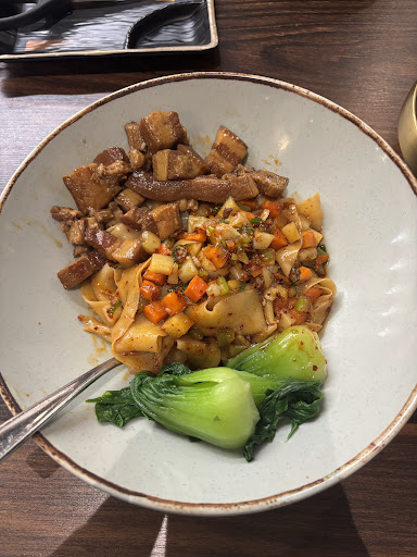 Braised Pork Belly Noodle $18 Solid option for braised pork belly in SLO. Doesn’t come advertised as spicy, so you’ll need to add a lot of chili oil. Don’t let the portion size fool you. Decent amount of pork belly, the fat combined with the chili oil fills you up well.