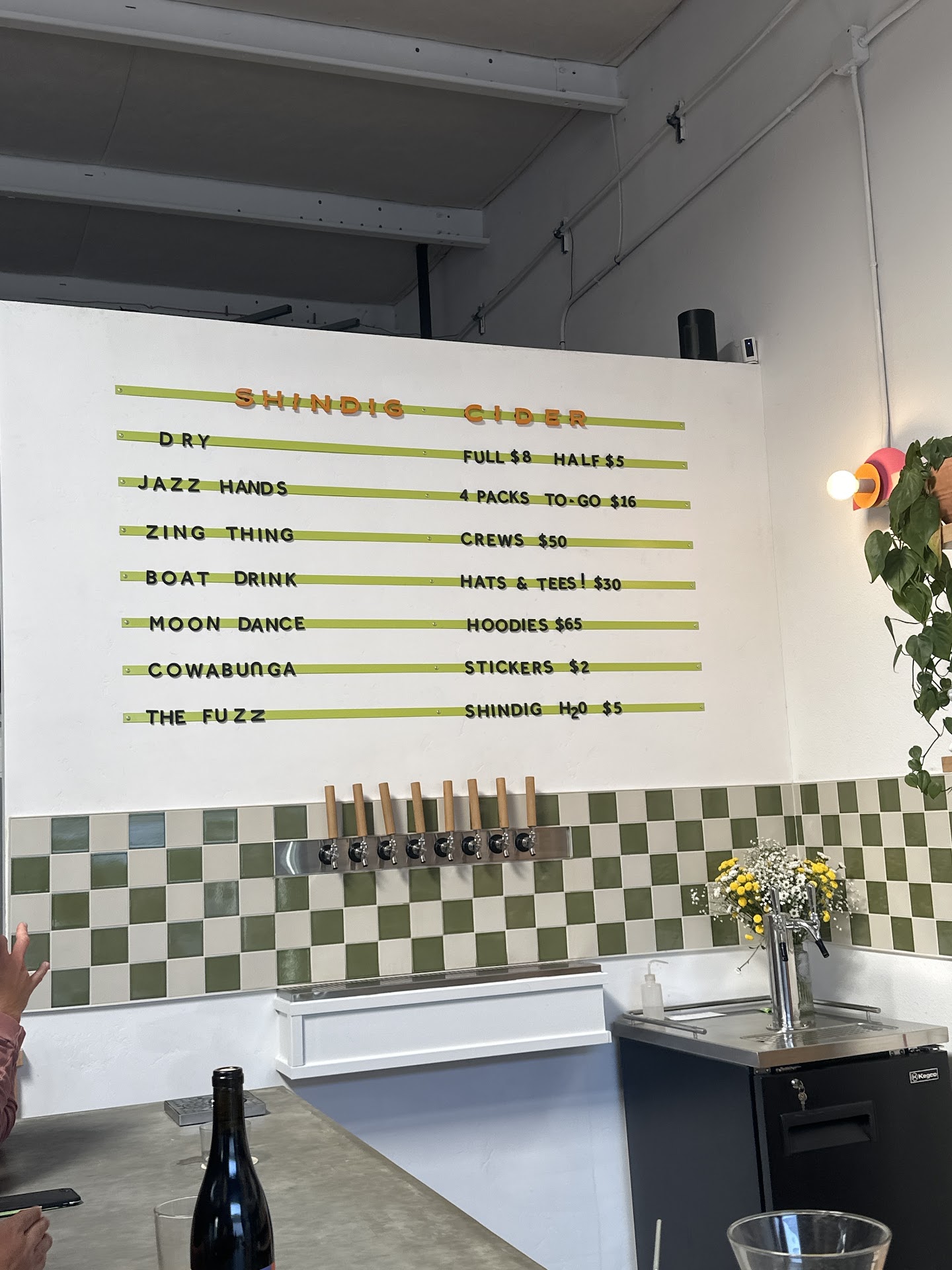 Read moreWe had a fantastic time at Shindig Cider with Chelsea as our bartender - she was so kind and knowledgeable! Even though there weren't any food options available, they did have some snacks and allowed outside food. The place was very clean and well-maintained. They had a great selection of ciders, from dry to tart to slightly sweet. Chelsea even recommended a pizza place nearby for us to grab a bite to eat. We'll definitely be back with my girlfriend soon. Thank you,...