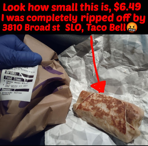Today I was flabbergasted after spending this much money and getting like nothing what I paid for. They were also 30 minutes late making the food when there was nobody there but the fact they gave me this small cantina chicken burrito but it was advertised as bigger but they gave me something so small I didn't know what to think of it plus it tasted horrible. I felt so ripped off and this place isn't clean folks. The floors are so dirty you can see the grout pot black all over the place and I wouldn't be surprised they have rodents and cockroaches in this place. I only go this place if I'm hungry but I really try not to eat Taco Bell food because it's unhealthy food. However you should not be ripped off for giving them business like this and they give you nothing in return. I feel upset what got after spending $8.90 here. I'm going to file a better Business bureau complaint on this business because this is really needs to be reported to...