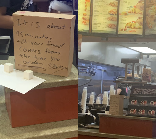 Read moreI mean, its taco bell, I never expect much in the way of service, but wow. The woman who works behind the counter here is the definition of unprofessional. We ordered our food online with a mobile order, and didn't come into the location until after the app notified us that our food was ready. After waiting at the "mobile order" pickup counter, the woman behind the counter repeatedly shouted things at us that we couldn't hear through her mask, and also because she was so far behind the counter. After waiting a few more minutes, she came up and said "order at the machine if you want anything". I said we ordered online, and she responded "then you'll have to wait". We proceeded to wait another 10 minutes or so, before she moved an order around behind the counter that looked like ours. After asking about it, she said it wasn't for us and moved it out of reach before proceeding to then go to the back of the store. Only about 20 minutes later, when another employee either came back from lunch or clocked in, were we acknowledged. We asked who the mobile order was for, and lo and behold, IT WAS OURS. I'm convinced she did this on purpose, because I did see her check the receipt before she moved it. I get it, you're busy, and normally service workers deserve to be applauded for handling the stress of their jobs, but this was unacceptable. All in all, it took over almost an hour for us to get our mobile order AFTER we were notified...