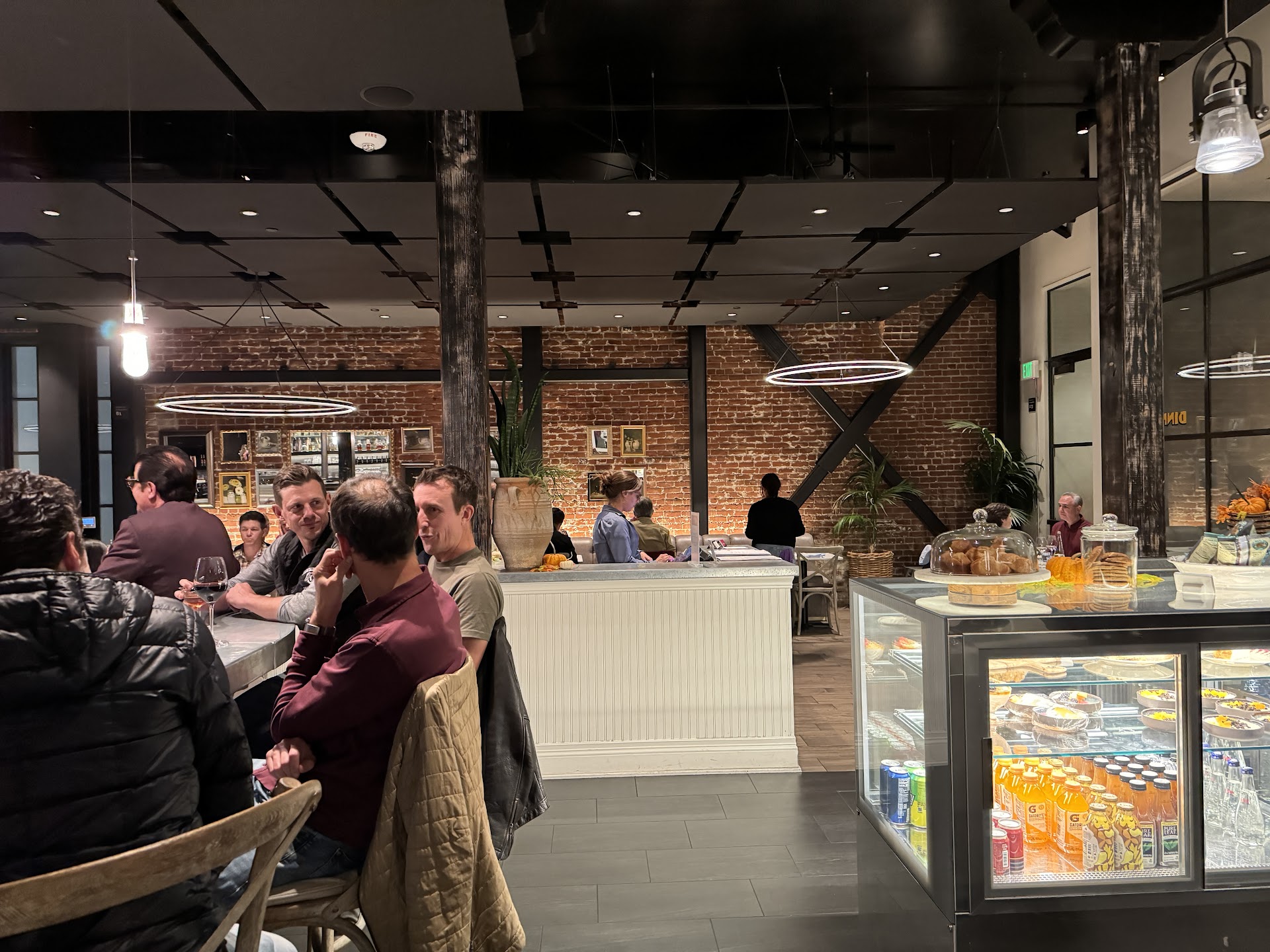 Had a wonderful dinner with the family here. Very nice wine selection to go along with the good starter offerings. Oysters were very nice start, which Max said were from Baja. I have always had PNW, NorCal, or New England varieties. These were delightful! Followed with the brie, which devoured in 3 minutes. Worth the wait. It is suited for two so order more than one for three or more people. My wife had a very well prepared martini and a Cesar's salad was shared. Nice touch with pickled purple onions. Mains were pasta, lamb, and the chefs cut steak. The Lamb was very tender and delicious. The lamb sausage is like a semi spicy kofta. My wife had the steak which was lean and cooked perfectly per her order. The accompanying mushrooms and sauce did not overwhelm the beef, which is how we like it. I didn't get a chance to taste the pasta, but my daughter ate it all. We shared a carafe of Tablas Creek white blend. Don't know what the corkage fee is, probably should inquire since there are wineries all over the place. Finished with coffee and desserts. Coffee was nice and thankfully very hot! Don't know why so many restaurants serve semi hot coffee. Overall nice atmosphere. We dined outside which was helped by the cool summer evening. Inside was gorgeous, with a beautiful bar. We all commented on the modern but comfortable french bistro chairs. Very nice touch. I will return to try the beef bourguignon or octopus. Finally our server Max did a great job pacing the orders and answered all the questions on the menu. There is street parking, but if you know this town, it's good to know the several parking garages nearby. I do reccomend reservations, which we made 45 minutes prior. We were pleasantly surprised by this place, having just arrived in town and picked it...