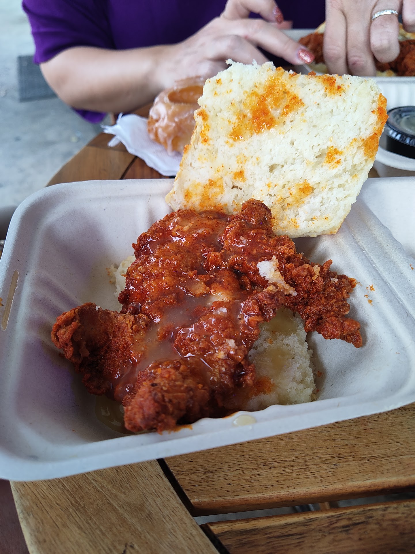 Ā Ā Ā Read moreTatted up, buff cashier acted annoyed and wouldn't make eye contact when I ordered, this was after I put a couple dollars in his tip jar to be nice. Took almost 20 minutes for one sandwich (and I was one of two customers). The cashier waited over 10 minutes to bother getting my donut holes; getting my donut holes he ate a couple between putting mine in a bag, a health code violation that is obvious. The chicken sandwich was well seasoned, but for $6 and change half a chicken breast on a plain biscuit is not worth it... it IS advertised as a full chicken breast. I would recommend any other coffee/ breakfast shop nearby. It was early in the morning and I was going to class but I should've spoke up and demanded my money back. If you do go, be sure to tip after...
