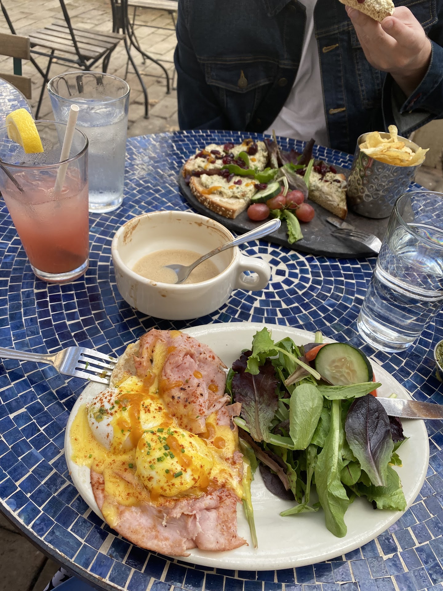I love this place. I’ve only been a handful of times, but the patio is gorgeous, the staff is kind and the food has been great….. except for my Sunday brunch on the 13th. I don’t complain much but I feel like I should say something, as I don’t feel like I was treated fairly: We had an 11am reservation and we were seated and serviced immediately. 4 adults and a toddler; I ordered the salmon Benedict. The menu states it takes longer than other plates, everyone was served before me, no problem. I had that expectation. 30 minutes later everyone is done with their meals and the toddler is restless…. The server checked on us and I stated I had not received my plate. He said he would go check, returned and said he forgot to put in my order. I told him to please make it the vegetarian Benedict, just so the others didn’t have to wait any longer. He left with no apology. When he returned (VERY QUICKLY) with my plate I was surprised. However, it turned out the surprise was absolutely no seasoning on my food and the poached eggs had raw whites. It was like pushing snot off my plate.