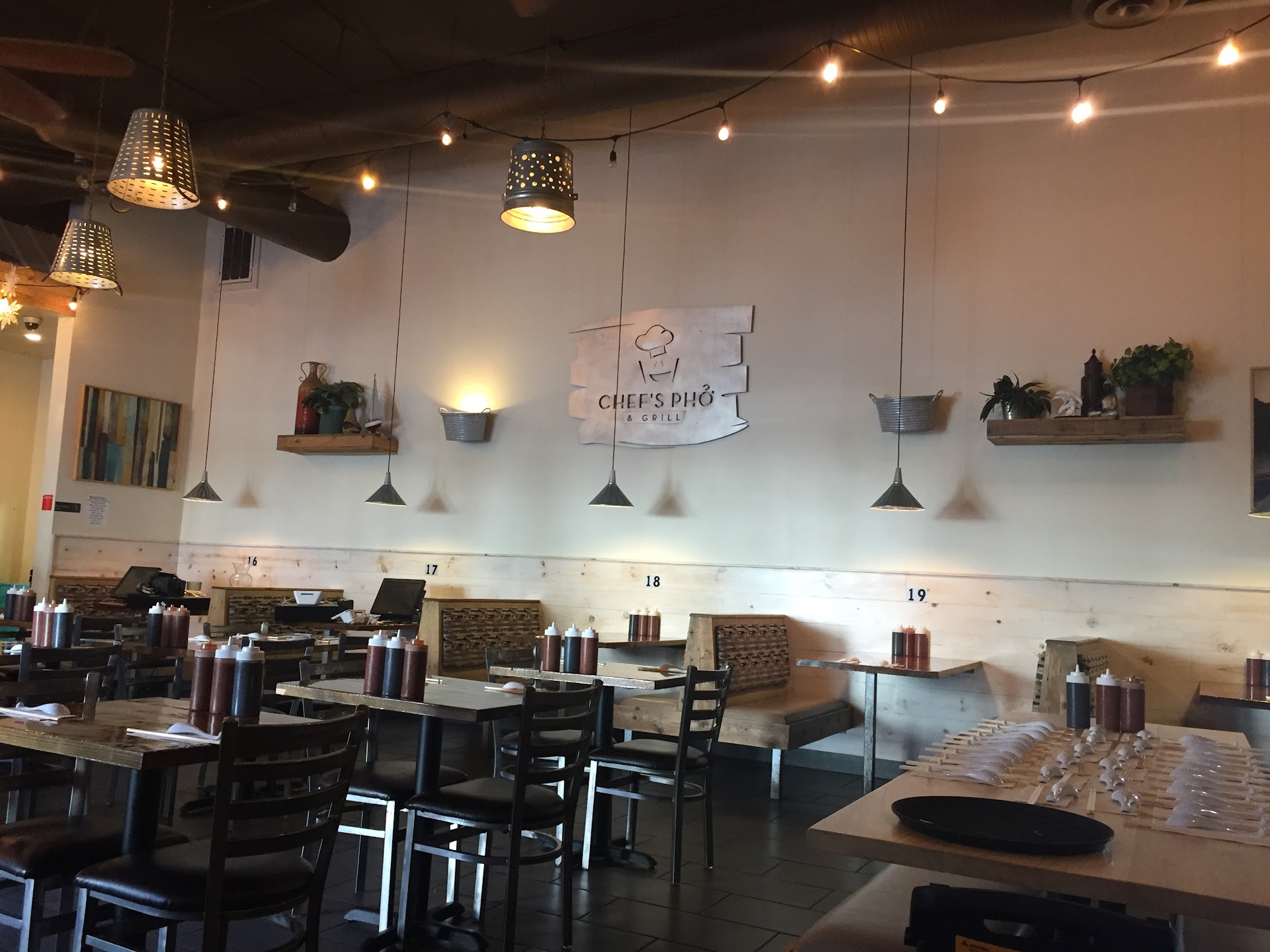 Read moreGoogle has Chef's Pho as a one $. I would say it's more like $$ bordering on $$$. Having said that, it is a classy resturant, great to take a date. Quality food in a trendy and classy environment. I love Vietnamese food, been to Vietnam and have a buddy who owns a Vietnamese resturant.. Chef's Pho is legit, maybe too legit?? I was happy to order the Chef Special Spicy soup (Bun Bo Hue?) North Vietnamese Pho with a beef broth and more spices than traditional Pho. It was full of goodies (cooked pigs blood, sliced chicken meatballs, intestine, pork belly?, serloin, others?) it also came with a side sauce made from innards? I adjusted a couple of the options to my taste, added lots of Jalapeños and condiments from the table, all super clean and tasty, to create the perfect broth. It was excellent, it was real, I'm sad to say it may be too real for American tastes. The Banh Mi was perfect, we ordered the grilled pork. Bread was excellent, slight crunch on the outside, soft inside. Grilled meat and rice dishes were all great. Dipping sauce needed a little more ricevinigar and sugar. Shrimp came peeled and easy to eat, we appreciated that. The owner is on-site, working hard to train staff and make everything perfect. Nice to see and I hope his hard work pay off. Resturant and condiments are kept very clean. All parking spots in front of restaurant are handicapped? You will need to park off to the side a little. Opens at 10am!!! I love that, sleep in or workout, skip breakfast and eat an early lunch before hitting the...