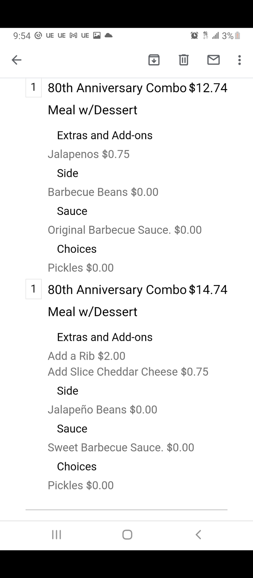 Read moreAbsolutely despicable! They are advertised all over 8 News channel as well as every Veteran’s Day restaurants promotion. They advertise a free pulled pork sandwich on Veteran’s Day with promo code VETFREE. We were out in the area, both of us retired veteran’s, and ordered one each online since they say they do pick up orders as well. We ordered the free sandwich at 11:29 with a pick up time of 12:15 and included a tip obviously because I’m not going to give them nothing. Went to pick up the order at 12:15 and they stated we stopped doing this promo 15 minutes ago. First of all your advertisements are everywhere and it says nothing about a time line like most other restaurants do. Secondly, that means you do the promo for what, one hour because you just opened at 11 am and it’s now 12:15. Third, the order was placed at 11:29 so it still should be in the hour time line. After all this, we state how about our tip we already paid you and received nothing? They stated they will refund at some time. Listen here you overpriced BBQ place that has small portions, don’t advertise something you don’t plan on following through with. If you are a veteran or active duty I suggest you not support this false advertising company with your hard earned money. Needless to say, corporate was notified with no help, channel 8 news was notified of their false claim, we received no food, and they still got our tips! Sorry...