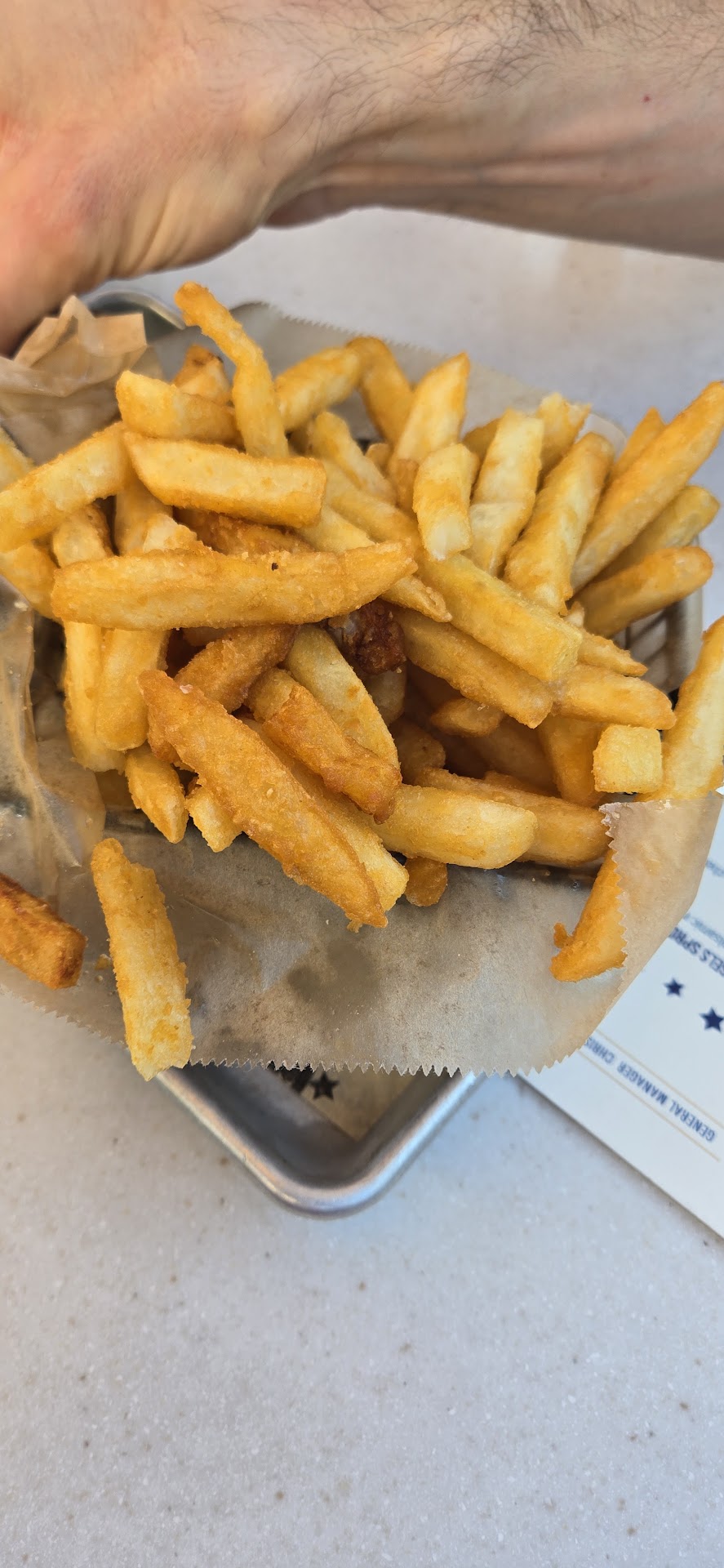 Where it lacks receiving my 5 stars are the dishes that we ordered as well as the bowling alley and arcade games. The fish in the fish and chips were dry and had an unpleasant bitter after taste. I’m not sure if it was the batter or the oil used to fry them in but it wasn’t good at all. I would’ve preferred a classic fish with maybe Panko batter or just a simple thick batter then deep fried to a light, golden, crispy and juicy filet. The burgers were just “ok” nothing to rave about, just a burger on a brioche bun.