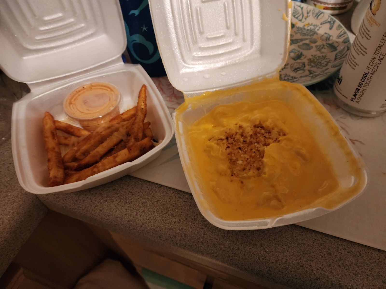 Read moreWe went in for Mac n cheese and tater tots. We were told it would be 10-15 minutes. So we agreed to wait. The entire time this guy was on the phone to who we assumed is his boss, because he kept saying, "yes, sir". He never washed his hands or wore gloves, never put his phone down. He left ppl standing at the counter for over 15 minutes. 45 minutes after we ordered he comes out with two Styrofoam containers half the size of the standard cardboard boxes they normally had. Get home to find fries NOT tots and no liners in the containers. My son is going to return it tomorrow for a refund. We will not return to this place. We tried calling but the voice-mail box is full. I'm sure of complaints. I told the guy tots at the register TWICE and once at the 42 minute mark again and he still got it wrong. If that was his boss on the phone, HIRE SOME EFFING HELP AND GET OFF THE PHONE! Maybe your guy could get something done. You don't put hot food on Styrofoam because it leaches chemicals into the food. You should have asked if that was OK DURING the order. And PUT THE PHONE DOWN!!!!! 🤬😡🤬😡🤬😡🤬😡🤬😡🤬😡🤬😡🤬😡 HARD PASS on this place. You've...