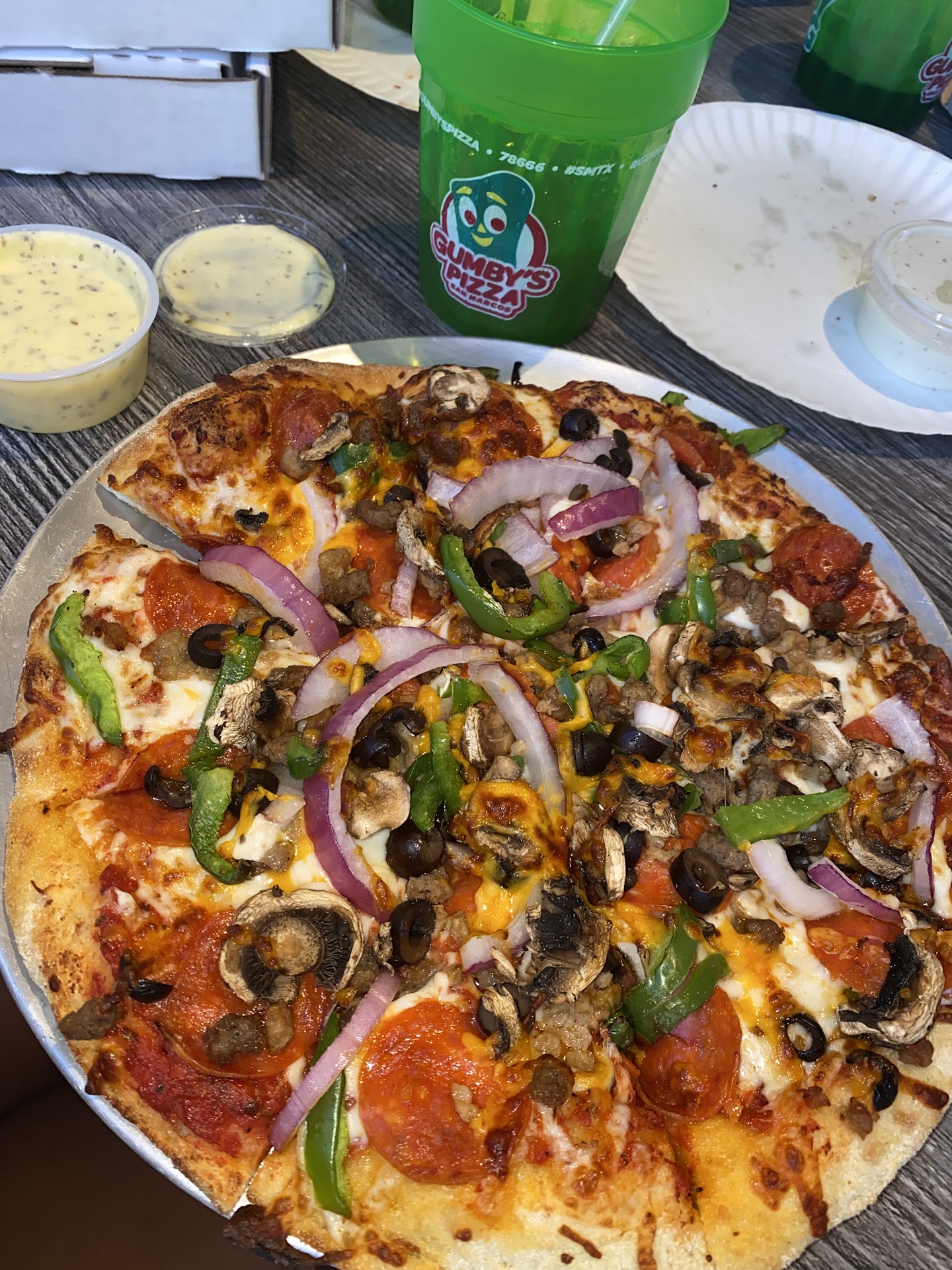 First of all, your online order system is horrible. You need to dump it. It is too difficult to place a simple "to go' order. Secondly, it is a Sunday, football is on. How do you NOT have Pizza rolls? I drove to San Marcos just because we were craving Gumby's. I could have save myself a trip and gone to Buda to your competitor. Third, the young girl in the shorty shorts needs to go. She has ZERO clue what was going on. I was not sure if she was new or probably just rolled out of bed. The shorts she was wearing were a tad bit small for her. Maybe if she was a bar tender at a bar, sure. You work at a restaurant. If the shorts were any smaller, they would need a hair net themselves. I get it that this a college town and you are going to get lackluster service. If you are going to hire folks to run your place, you need to hire folks that are going to put your business in the best light. I was very surprised at the downhill customer service at this place. I had been multiple times and it had always been fantastic. Perhaps I hit this place on and off day. I am not sure. I think the next time I get a craving for pizza, I will stick places...