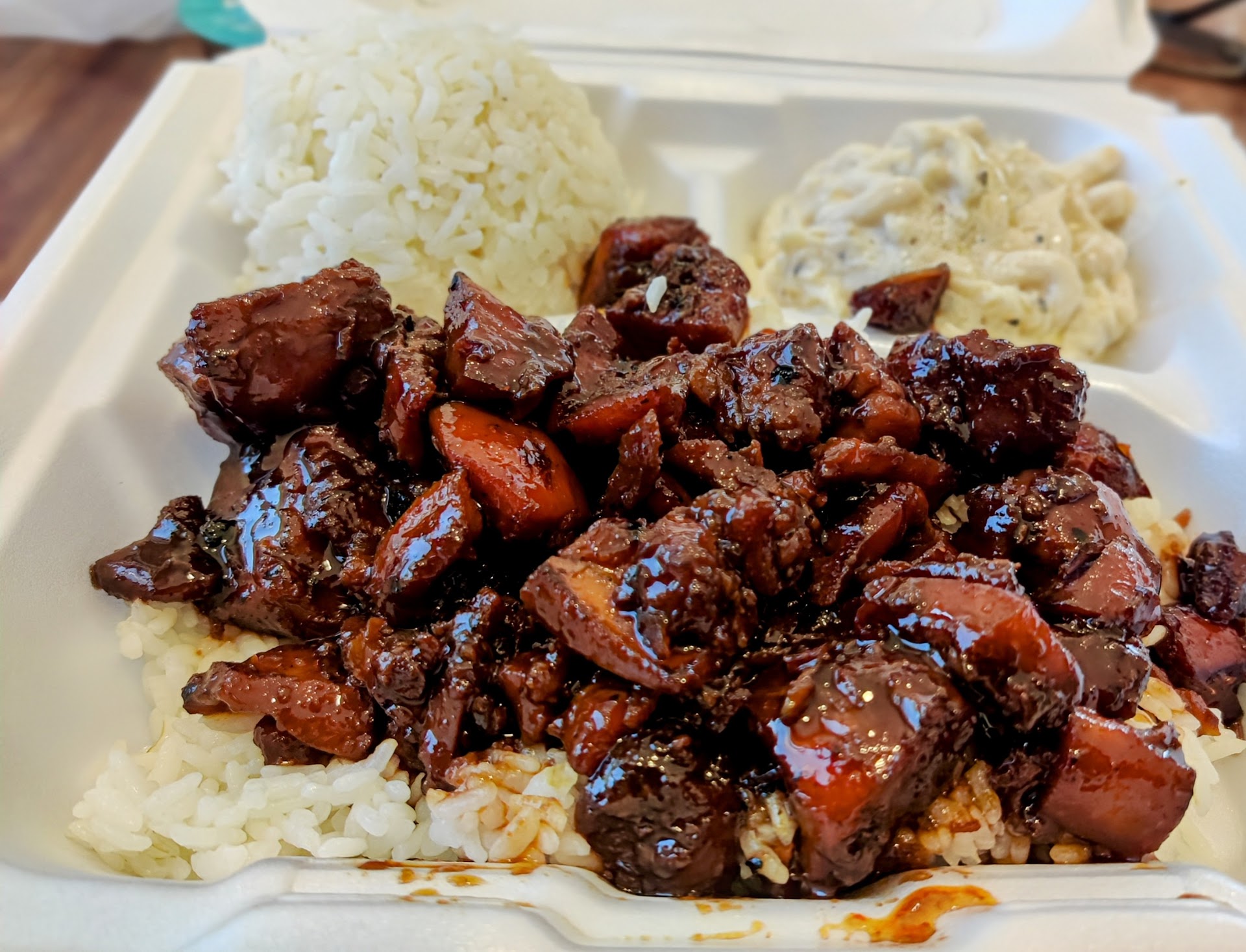 Honestly I didn't know anything about this place...so I had to have an open mind to all the flavors here. I love sweet and spicy mixes...so the Molokai chicken was my go-to choice here. I went with the rice and macaroni salad as my sides as well.