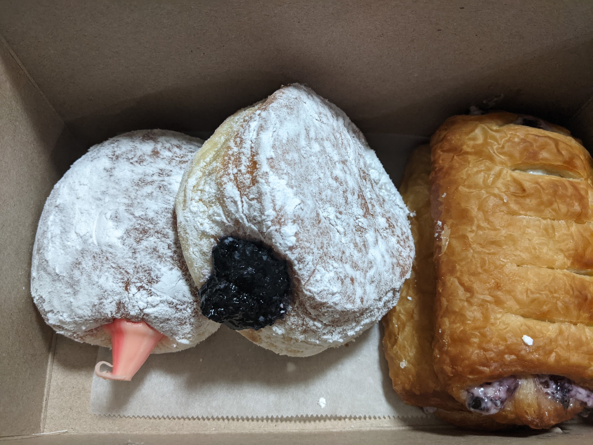 We picked out a few donuts and the blackberry donut was definitely a stand out. The donut was light and airy with a crispy outer layer and soft inner layer. It was lightly powdered and bad a blackberry jelly filling that wasn't too sweet.