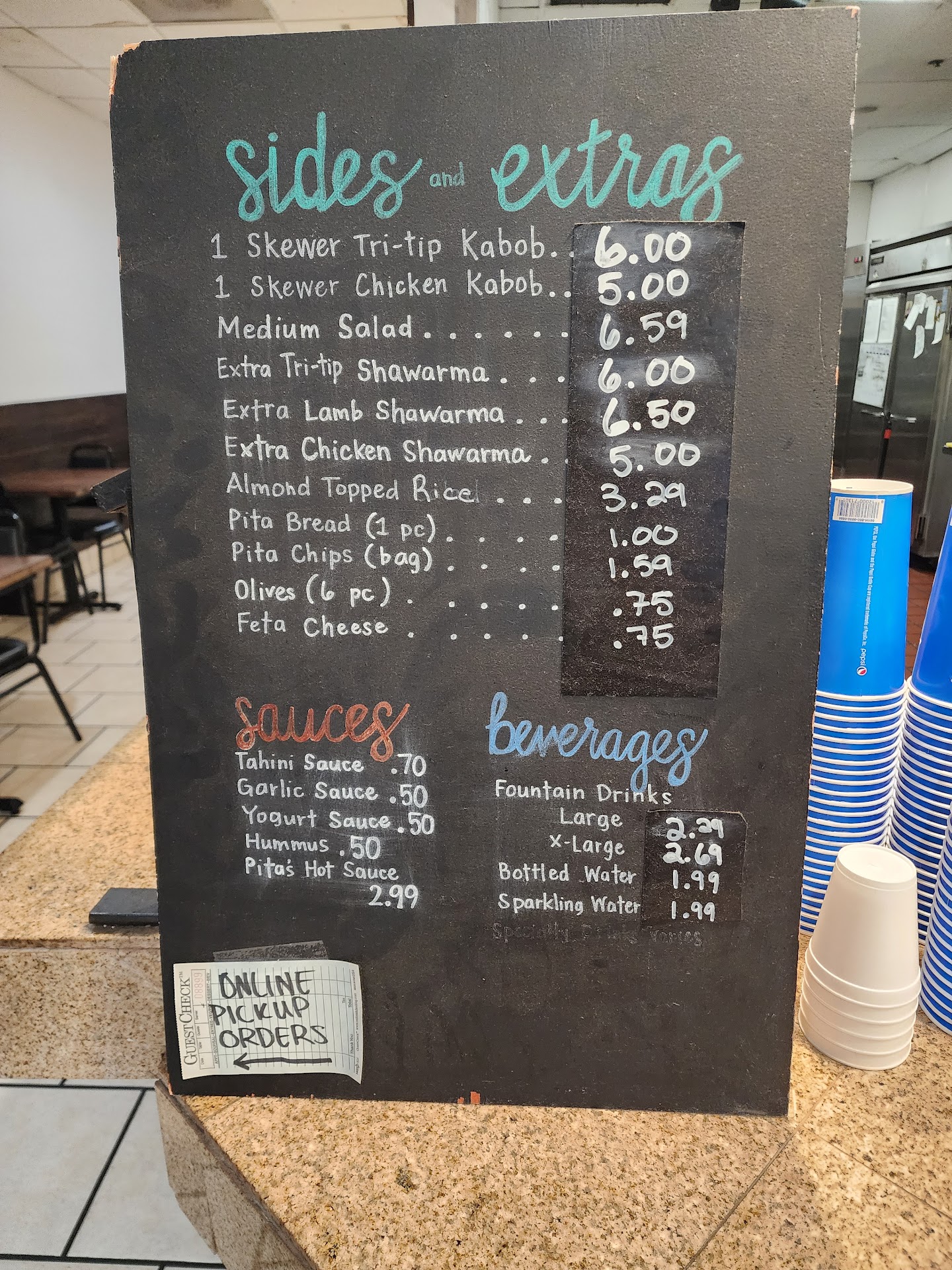 Read moreI needed a quick lunch and went here based on the reviews. As a Mediterranean restaurant, I assumed they'd have gyros on the menu but couldn't find any after staring for a while. I was told "the lamb shawarma sandwich is a gyro" and ordered that. It was NOT a gyro. It was pieces of lamb cooked like carne asada, but overcooked and tough. It was served on a pita with some red onion and tomato... and a LOT of dill pickles(??) It came with a small side of yogurt sauce, which was the most Mediterranean thing about it. The pita sandwich came with fried pita "chips", which were cold, greasy and overcooked. Fries or a little salad would have been much better. It was ~$14 after tax.