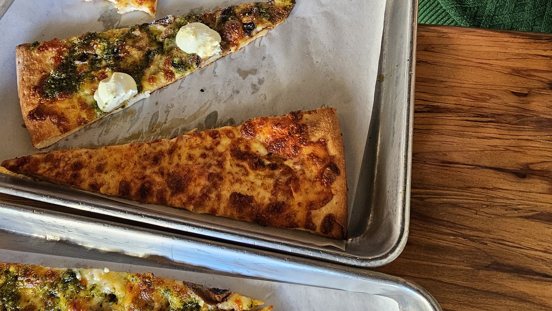 Read moreI really wanted to love this place. I had heard it was great. We ordered 4 different kinds of pizza by the slice, warmed to order, and the chopped salad. The place itself is wonderful. Laid out well, clean and nice high ceilings and a well placed bar that doesn't take up the whole room. Staff were mostly local college kids, and they did a great job. Knowledgeable and attentive. The salad was fresh and crisp, but largely flavorless, with even a hint of a chemical taste from the artichoke hearts. The fountain drinks were a tad watered down. We did not try the bar, but patrons seemed happy. The main entre, the pizza of course, was lacking. The descriptions were amazing, and if you like a very thin crispy pizza, which I do, it is tops in terms of that. However, and perhaps it was just old, but all varieties we tried were dessicated, dried out, overcooked and without flavor. Total disappointment. Perhaps cooked fresh would have been better, but these slices were horrible. Still gave 2 stars because the crust was thin and crispy. I wish I could recommend it, but I will not...
