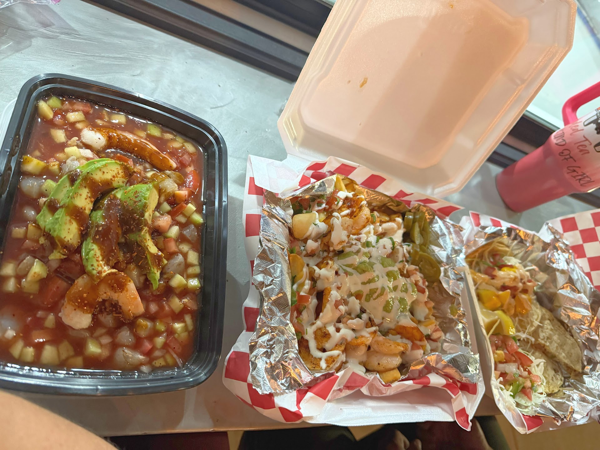 Read moreWe ordered two shrimp and bacon tacos, one mahi-mahi taco, one salmon taco, Fried cod, governable taco and the seafood tower. Since we Ordered two tacos it came with chips and bean dip. The chips were good, the bean dip was good but a very small amount of it and never came to Refill. We had a big order, but it did take a little bit to get the food longer than I expected since it was empty when we arrived. Besides that we enjoyed it mostly. The shrimp and bacon tacos were delicious. I think a little too much topping couldâve dropped the price a little bit and take off some of the toppings, but the quality was great. The seafood tower was good. The only thing I wasnât excited about was the fried cod there were several pieces that were not cooked thoroughly And the batter was a little more fried than I typically like, but we really enjoyed the food. the owners were on site bringing out our dishes with great energy and we...