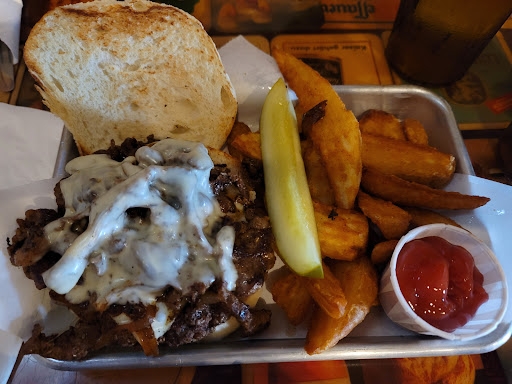 Read moreA drop in on the drive home. We were coming home from an anniversary trip and decided to find one last good pour before we went into exile in our town. Not disappointed in the least! Though Google Maps couldn't keep up with where we were and how to get here, we figured it out. Of course, having access from two different streets to the same establishment is probably what caused some of the confusion. Worth it!! Bar, pool tables, TVs on the town square side, restaurant with 30+ tap handles (and TVs) on the other side. Massive wall with all the beers currently on tap, color coded to assist and listed with ABV to boot. Waitress was very nice, friendly and helpful. Steered my wife thru a few recommendations and a sample or two to get locked down on a beer she thoroughly enjoyed. Got me a taste of the one I was eyeing because it was a little different in it's profile. Different, but GOOD. Food was fast and excellent. 666 Burger for me with sweet potato fries and a rib-eye salad for my wife (yep, I like my carbs). Ok, ok. She did end up getting a side of sweet potato fries after he tried mine. Everything was excellent and fitting for the style of the establishment. Remember, this is a pub. Enjoy viewing the retired tap handles that decorate the top of the bar and around the walls. We'll stop in again, if we are in San Marcos. Might even make it a...