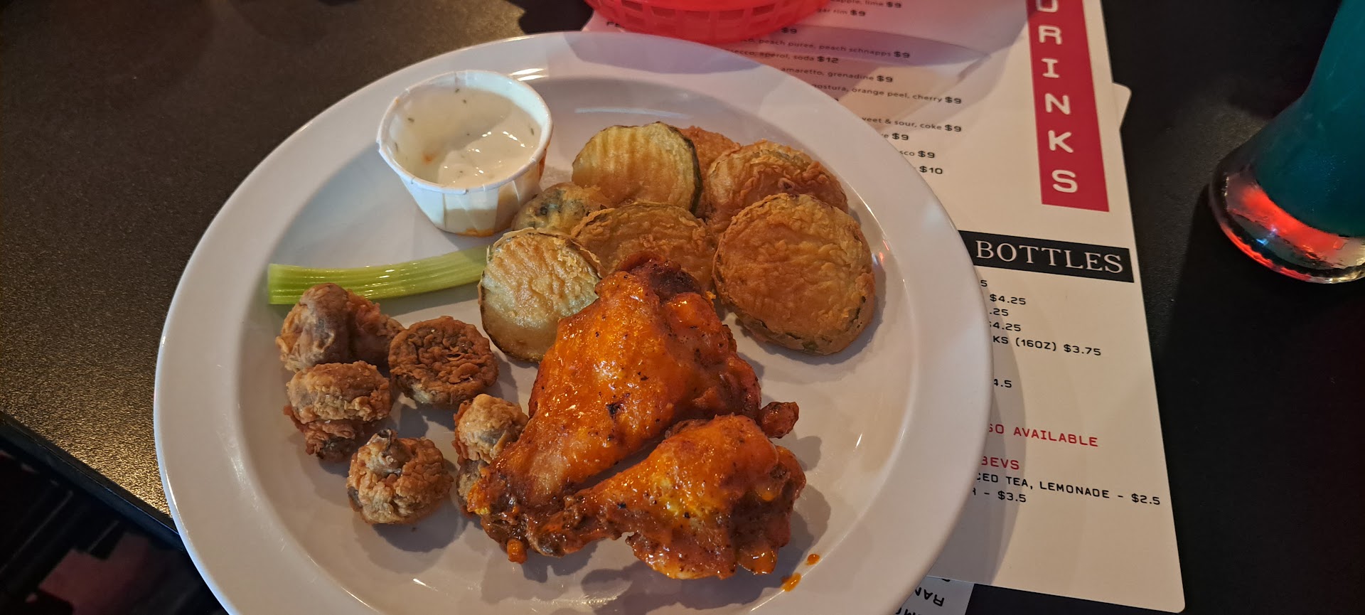 Read moreOk! We came out of town we decided to all try this place. Small inside. Pretty nice inside. Middle of down town. Peperoni Pizza great hot wingz were definitely hot! Good flavor. I love a cold salad and it was cold ceaser salad! Cheese stick were also great. Over all food was GREAT give it a 8. Service.... absolutely horrible! 4 people at the bar. Has 5 6 person tables or so and a few 2 person tables. Waitress got our drinks and never came back we had to wait for her to serve other tables, drink her drink, check her phone lollygag around and 2 other tables that came in after us got their food and drinks before we did before we finally waved her down to take our order. I made the whole order since we didn't have time on our end to enjoy an appetizer and our main food. It all came out pretty quick. Later down our time of eating She ask to refill a water for my child... she never brought the water back again we had to wave her down to bring it again. Not a place I want to return or to recommend just because the service isn't great. 1. I did notice she was the ONLY waitress serving. Megan is the waitress she either can't waitress well or she was to busy. I would recommend...