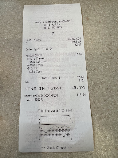 Read moreI am never going to this Wendy's ever again. Pull up to the drive-thru not another vehicle at the restaurant at all.. hold on a second from the cashier okay.. wait a minute for her to play with her cell phone I can only assume.. what do you want food I guess.. get to the window she hands me the coke.. no ice what there's no ice.. "we ain't got no ice" okay. Food was cold they're at least three people working.. the New Black manager was kicking butt.. every time you put a lazy Mexican as the cashier or manager guess what you get lazy customer not even customer service trash food oh we don't know how to work the ice machine and the food is trash it's cold how many times I have to say it's cold trash Wendy's pay your people decent you're charging $12 for not even $3 of food and labor. TRASH. AND NO IT'S FACTUAL NOT RACIST TO CALL SOMEBODY A LAZY MEXICAN IF THEY ARE...