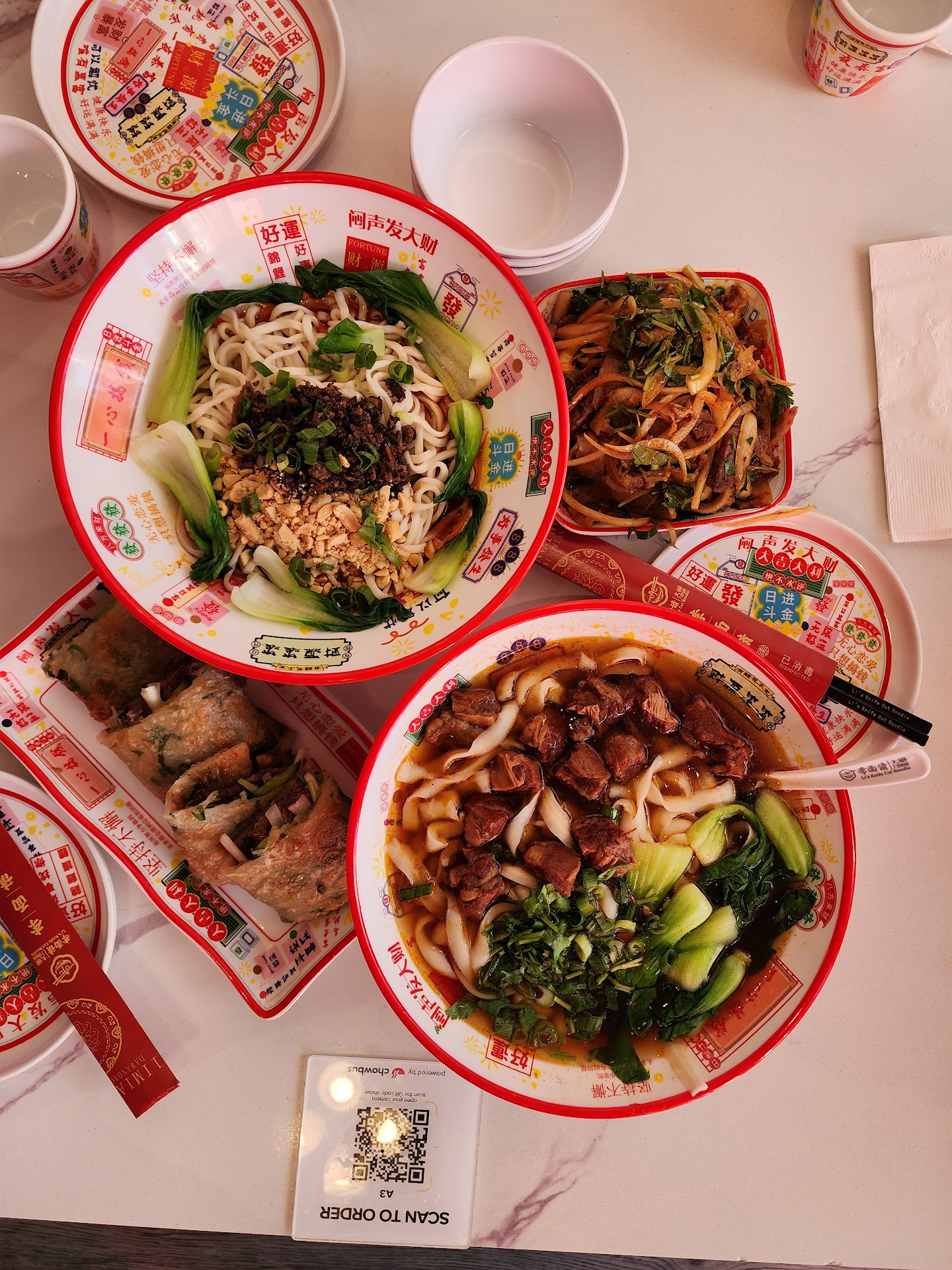 New restaurant in town. It replaces previous noodle shop. It is small restaurant. We arrived around 5:30 and get seated about 30 min later. The waiting list need to be improved. You put your name in the wait list using touch screen. You got text message but they won't send text message when your table is ready. Instead they call the number which most people were not there. Funny thing is because many who have number in front of us were not in front of restaurant when their number is called, we got the seat. After were seated we got text that we number is csncelled because we were not present when our number is called. The process need improvement. Now for the food. You ordered via QR code atcyhe table. There are plenty items on the menu. We ordered beef noodle soup, tan tan noodle, scallion beef pancake , and spicy beef and tendon appetizers. The order was ready pretty quickly. All came almost the same time. The food is yummy and the portion is good. The tan tan noodle is a bit salty. Price...