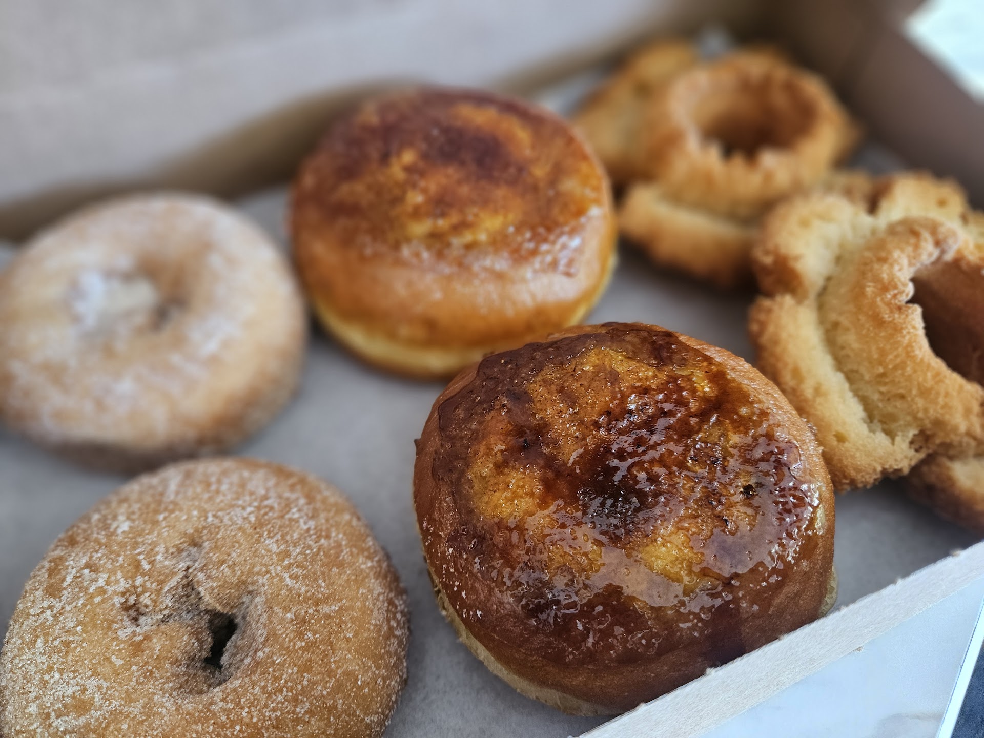 Let's first benchmark it with the glazed. Absolutely soft and fluffy and is nearly as good as Stan's (which is THE best). This is a huge statement. The Apple Frittata was deep fried crisp. Really well done. Sweetness not overpowering and structure. These are quality donuts, bar none. The creme brulee donut was also fabulous. Clearly, regardless of the variety, they are made with passion and care. And it shows.