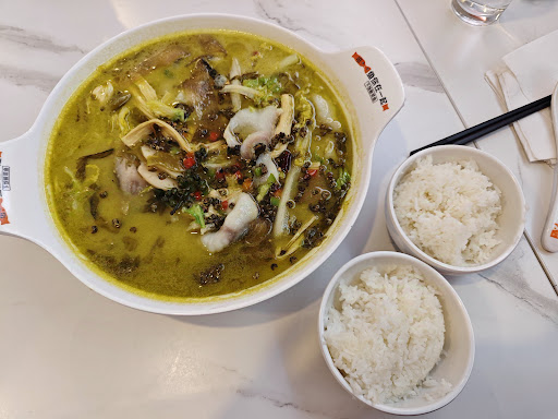 (Original review) The green Szechuan pepper suancai fish is amazing. (We avoided the signature one because it was specified on the menu that it'd be very oily and come with pre-selected sides) Bold flavor and great portions - a large one is enough for 2-3 people. Unlimited supply of rice would ensure everyone is well fed. Plenty of soup to mix with the rice, or you can take the leftover soup home and add noodles for another delicious meal. Just wish they had more locations on...
